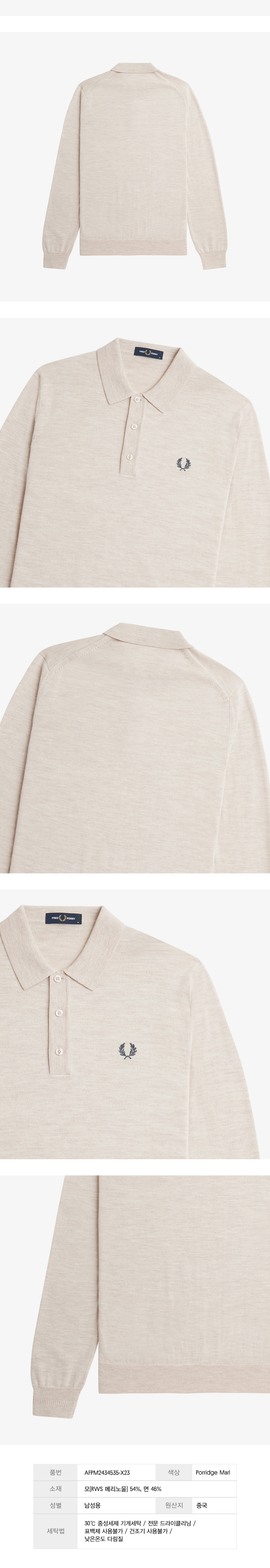 프레드페리 롱 슬리브 클래식 니트 셔츠 포리지말