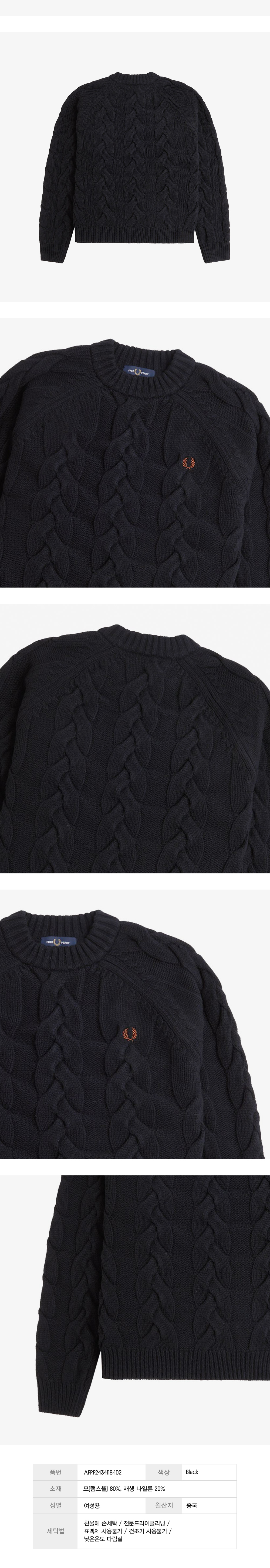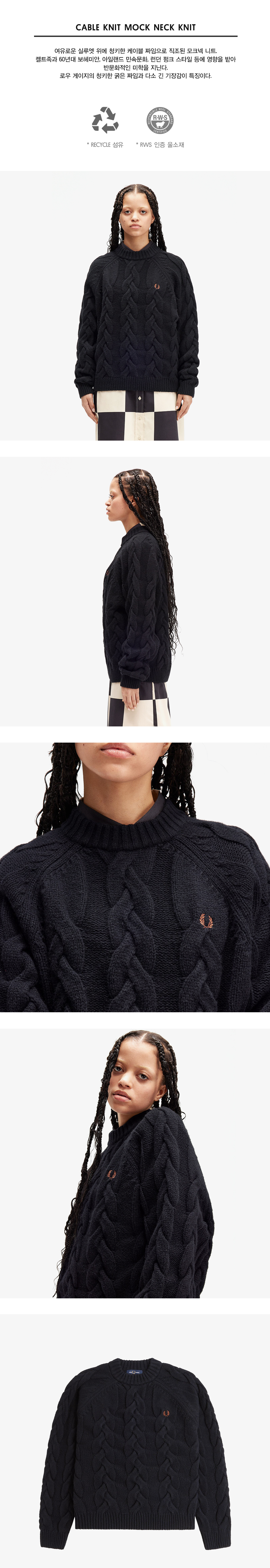 프레드페리 우먼 케이블 니트 모크넥 니트 블랙