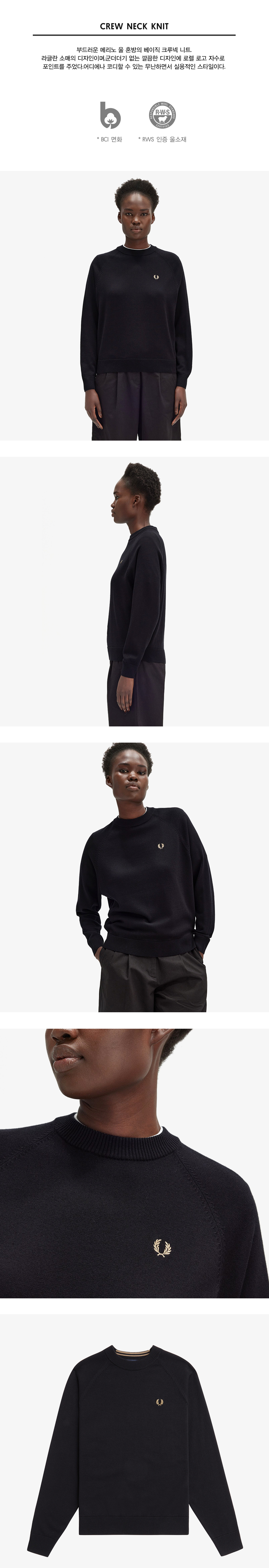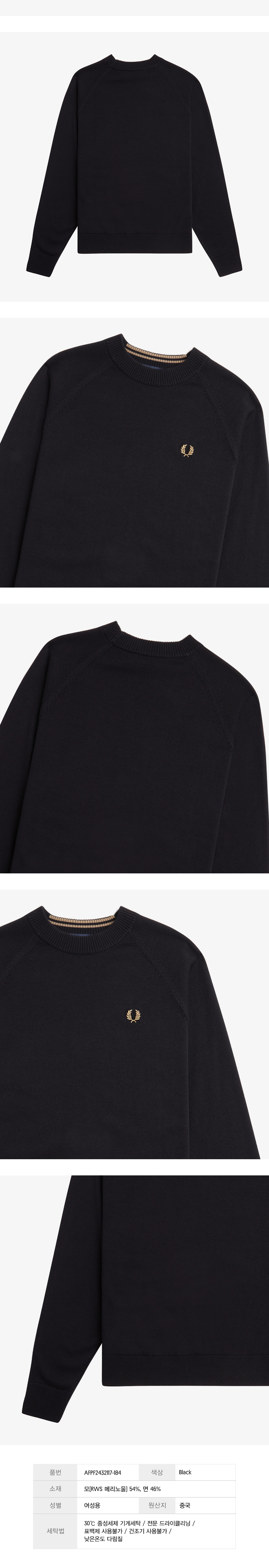프레드페리 우먼 크루넥 메리노울 니트 블랙