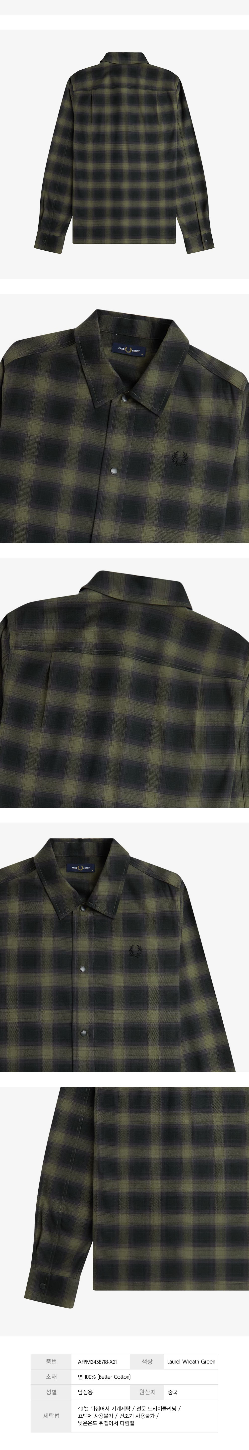 프레드페리 블러 타탄 오버셔츠 로렐리스그린