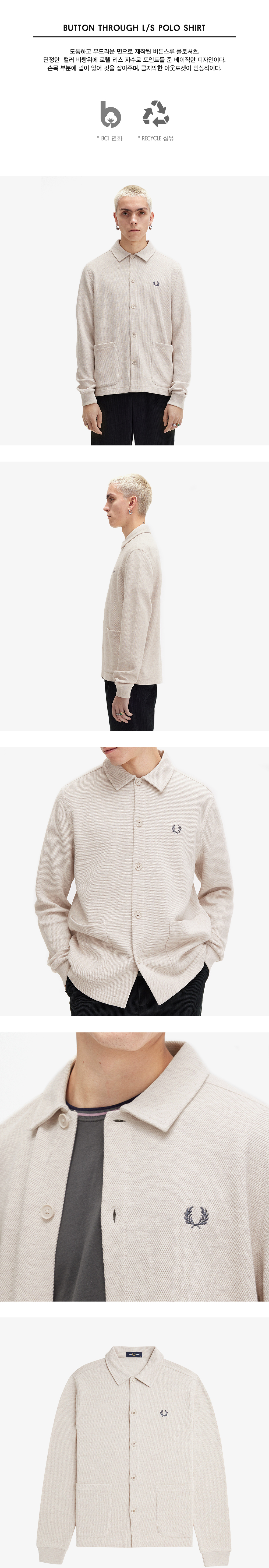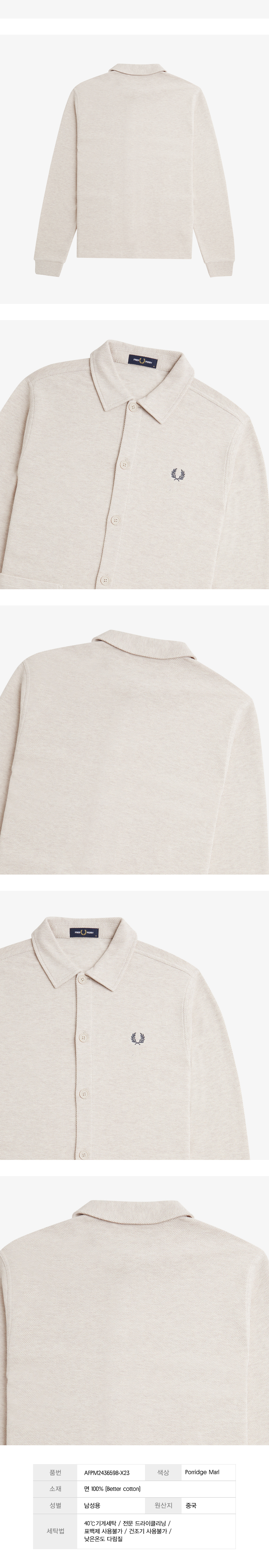 프레드페리 버튼 스루 롱 슬리브 폴로 셔츠 포리지