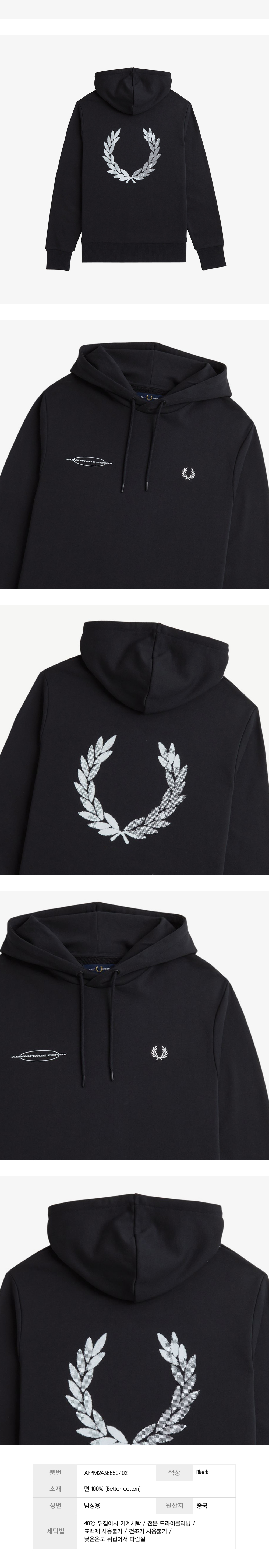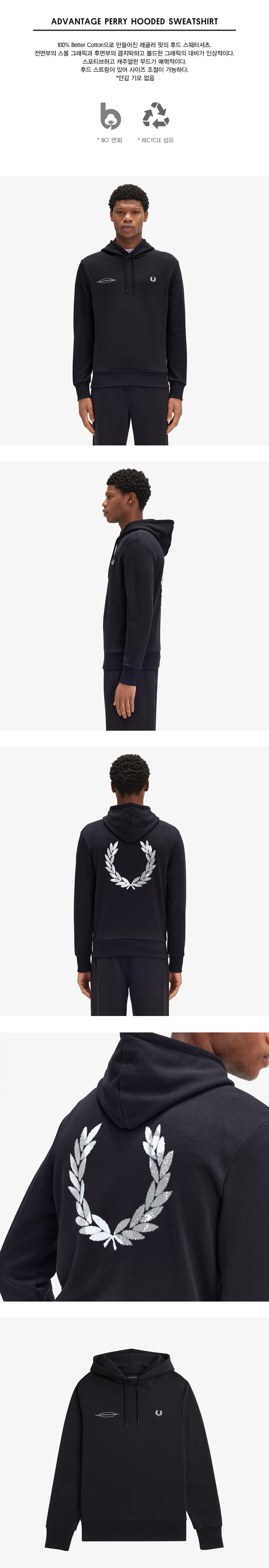 프레드페리 어드밴티지 페리 후드 스웻셔츠 블랙