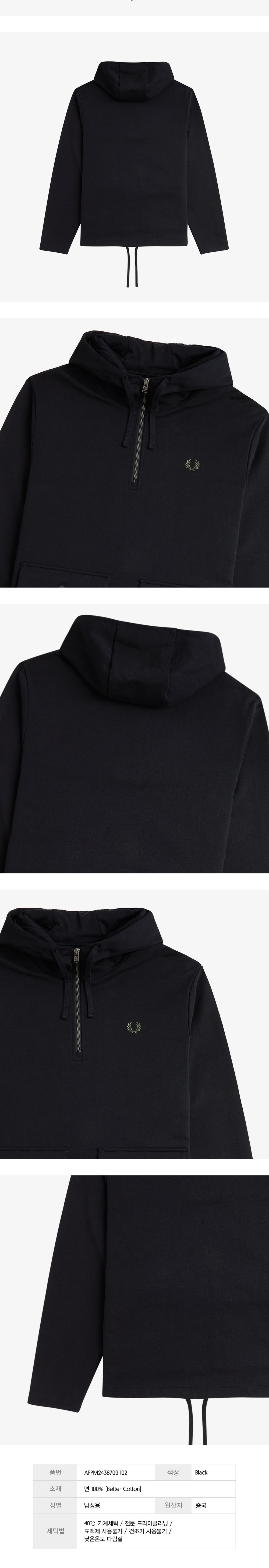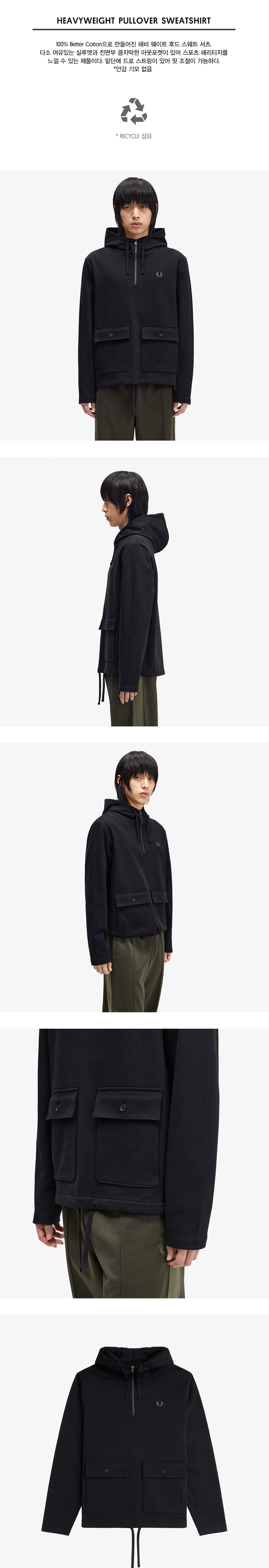 프레드페리 헤비웨이트 풀 오버 스웻셔츠 블랙