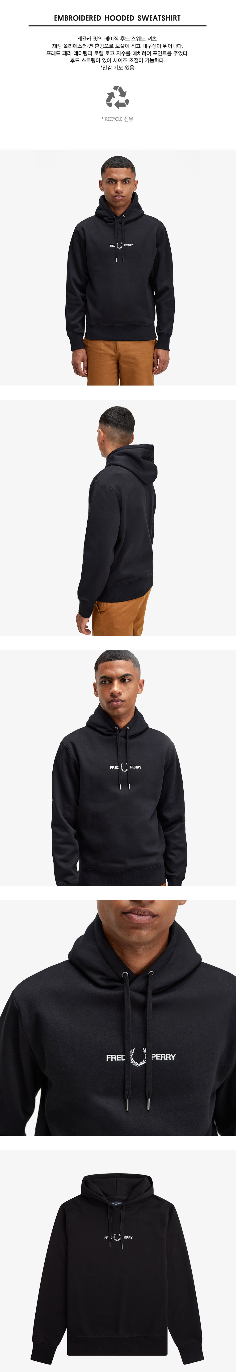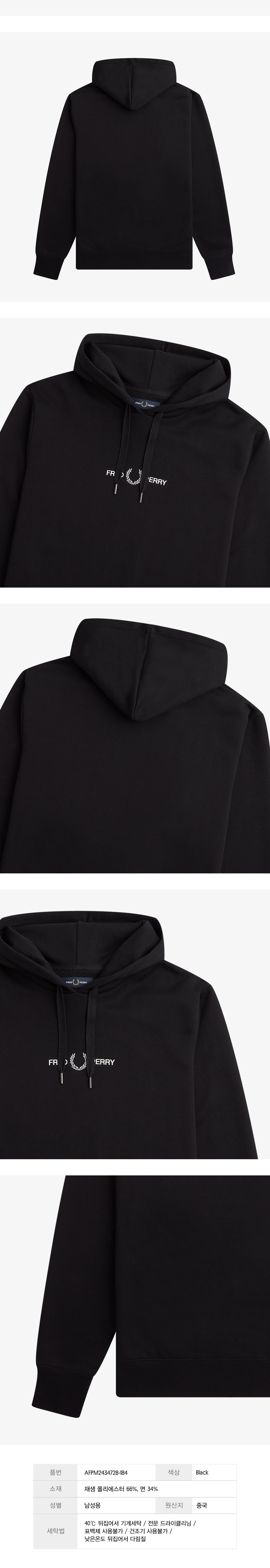 프레드페리 엠브로이더드 후디드 스웻셔츠 블랙