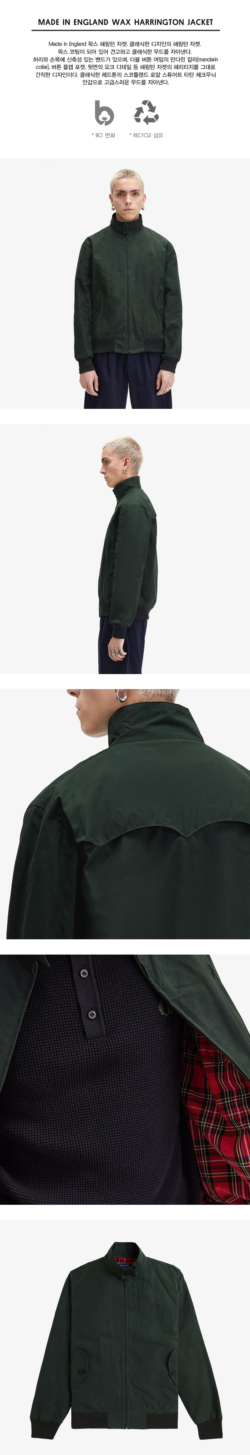 프레드페리 메이드인잉글랜드 왁스 해링턴 자켓 나이트그린
