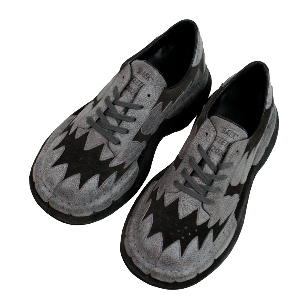 빅사이즈 스니커즈. 신발 전체를 가죽으로 감싸는 독창적 공법으로 표현되는 시각적 확장 EVA 창 사용으로 가볍고 편안한 착화감. 경년 변화가 자연스럽게 묻어나는 버팔로 왁스 가죽 사용. *소재 - Body : cow suede & waxed buffalo leather - Bottom : EVA *사이즈 - regular-01 fit - 와이드 팬츠에 어울리는 빅 볼륨 (굽높이 4.5cm(속굽 0.5cm포함)) - 일반 구두&스니커즈 정사이즈 대비 5 사이즈 다운 추천 *주문 제작 상품으로, 제작 기간은 결제 후 영업일 기준 약 12일 소요됩니다. *제품상자는 자사의 제품임으로 훼손시 환불이 불가합니다. [주의사항] 파라핀 왁스 처리된 버팔로 가죽을 사용하여 개체 차이가 있습니다. 빈티지 효과를 위해 사용된 방식으로 인해 왁스가 떨어져 나가면서 제작 공정상에서 자연스러운 흔적이 발생하므로 이는 의도된 디자인이며 제품 하자로 인정하지 않습니다.