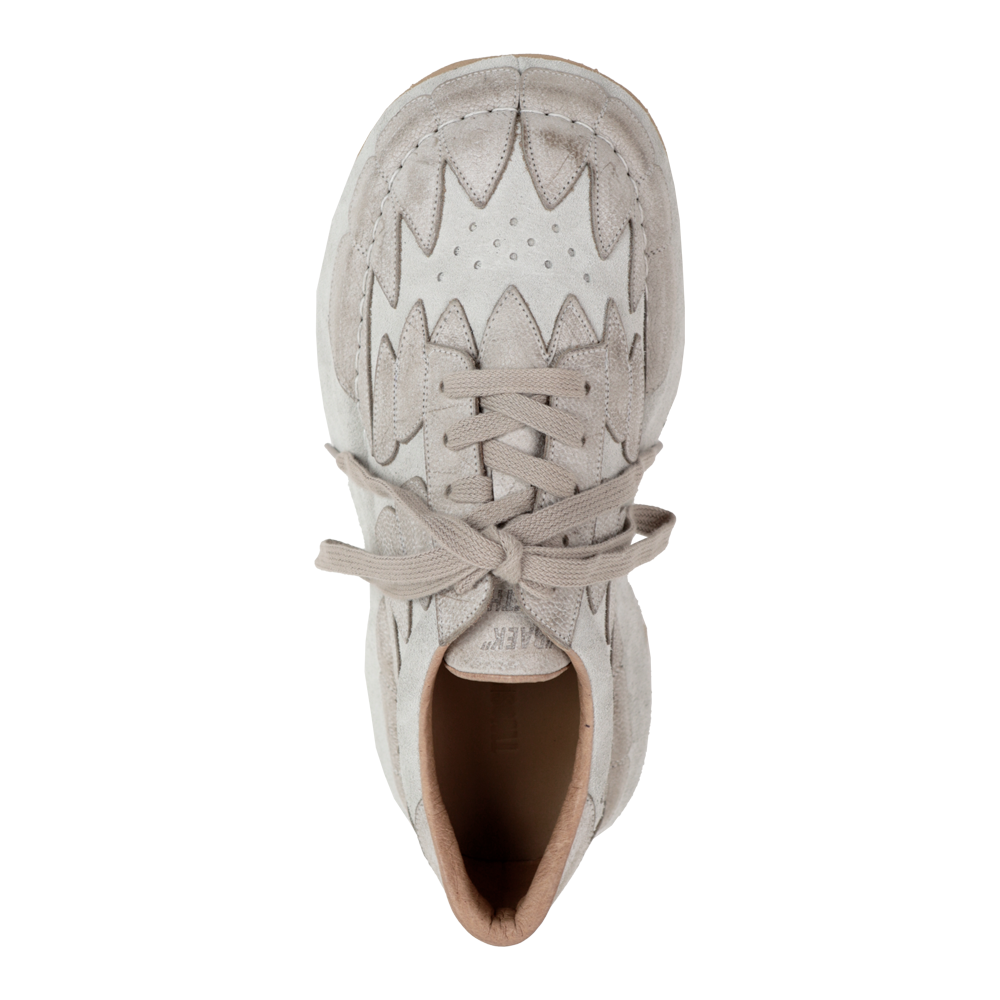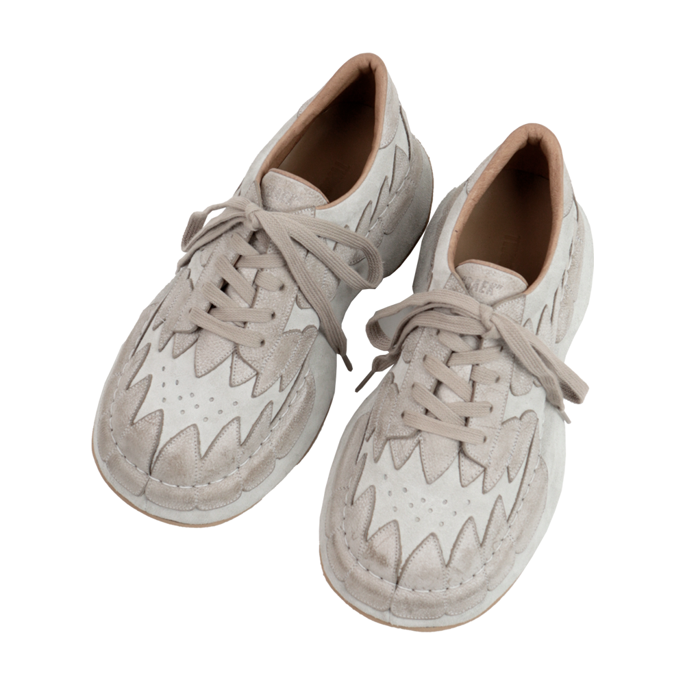 빅사이즈 스니커즈. 신발 전체를 가죽으로 감싸는 독창적 공법으로 표현되는 시각적 확장 EVA 창 사용으로 가볍고 편안한 착화감. 경년 변화가 자연스럽게 묻어나는 버팔로 왁스 가죽 사용. *소재 - Body : cow suede & waxed buffalo leather - Bottom : EVA *사이즈 - regular-01 fit - 와이드 팬츠에 어울리는 빅 볼륨 (굽높이 4.5cm(속굽 0.5cm포함)) - 일반 구두&스니커즈 정사이즈 대비 5 사이즈 다운 추천 *주문 제작 상품으로, 제작 기간은 결제 후 약 12일 소요됩니다. *제품상자는 자사의 제품임으로 훼손시 환불이 불가합니다. [주의사항] 파라핀 왁스 처리된 버팔로 가죽을 사용하여 개체 차이가 있습니다. 빈티지 효과를 위해 사용된 방식으로 인해 왁스가 떨어져 나가면서 제작 공정상에서 자연스러운 흔적이 발생하므로 이는 의도된 디자인이며 제품 하자로 인정하지 않습니다.