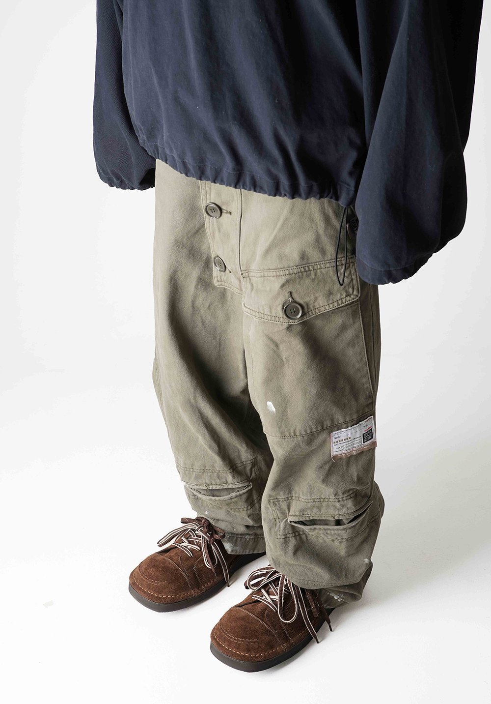 밑창이 닳은 스니커즈를 신던 커트 코베인의 노래를 들으며 제작했습니다. 와이드한 쉐입의 WIDE-02 fit을 기반으로 만든 아웃스티치 기법, 둥그런 앞코 디자인, 빈티지한 패치워크, 3홀의 조합은 장난스러운 소년의 모습을 떠올리게 합니다. *소재 - Body : cow suede - Bottom : EVA *사이즈 - wide-02 fit - 와이드 팬츠에 어울리는 빅 볼륨 (굽높이 3.5cm) - 사이즈 추천▼ (확인 필수!!!) 평소 신으시는 신발의 가장 작은 사이즈 대비 발볼/발등 넓고 높으시면 -10사이즈 발볼/발등 좁고 낮으시면 -15사이즈 다운(최대-20) (다운사이징하셔도 보통 작지 않습니다) *주문 제작 상품으로, 제작 기간은 결제 후 영업일 기준 약 12일 소요됩니다. *제품상자는 자사의 제품임으로 훼손시 환불이 불가합니다.