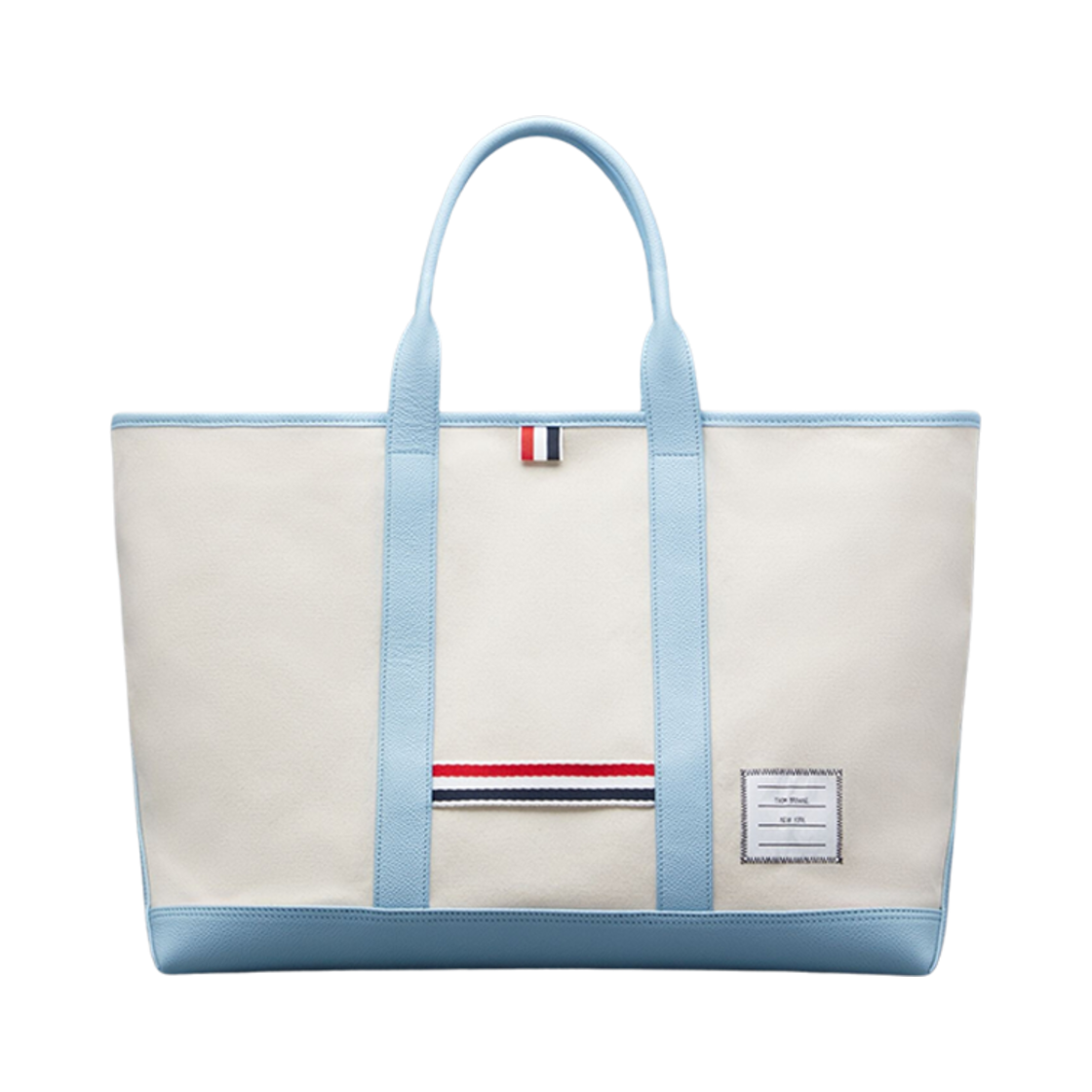 Thom Browne Cotton Canvas Leather Medium Tool Tote Bag Blue