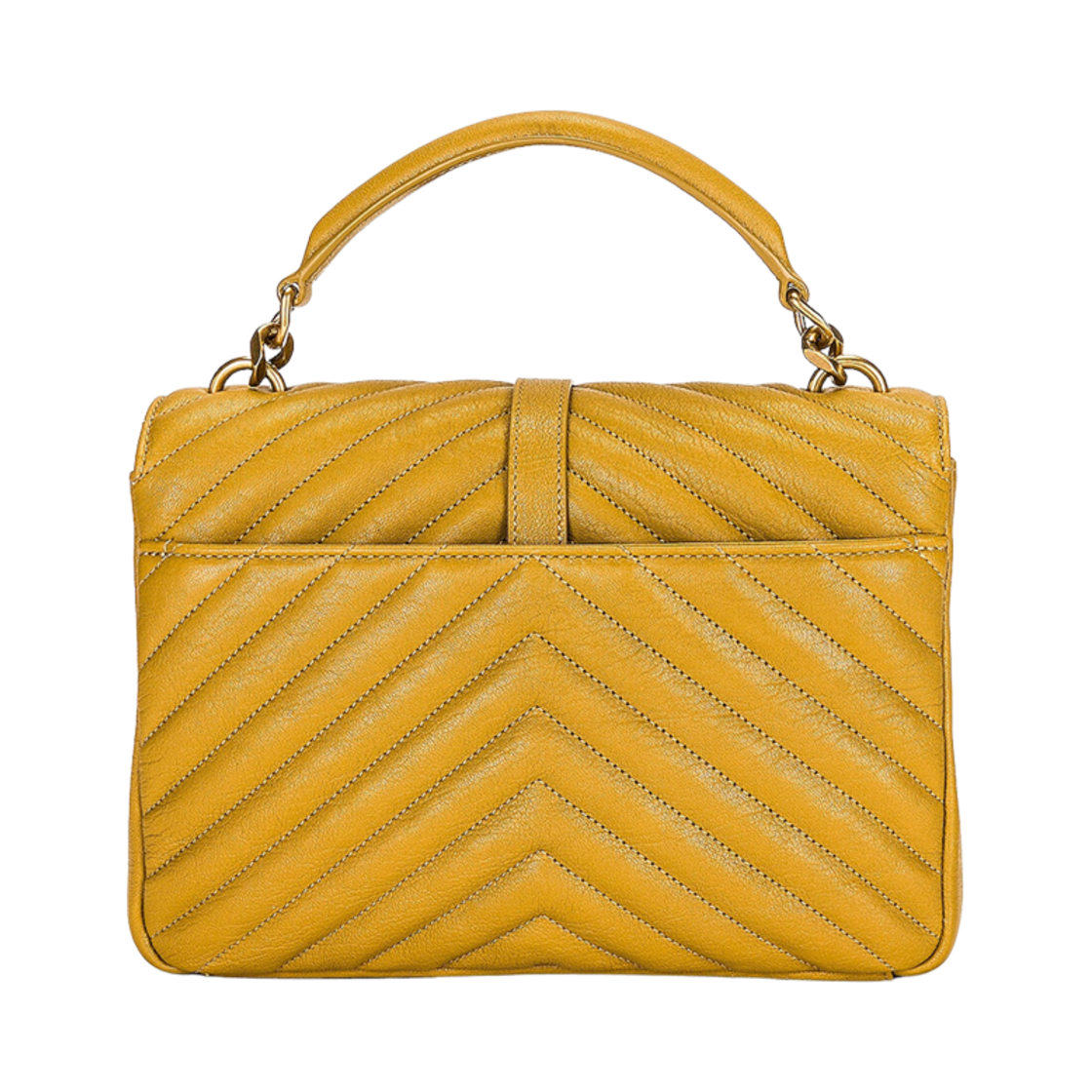 Saint Laurent College Medium Chain Bag in Quilted Leather Golden Olive