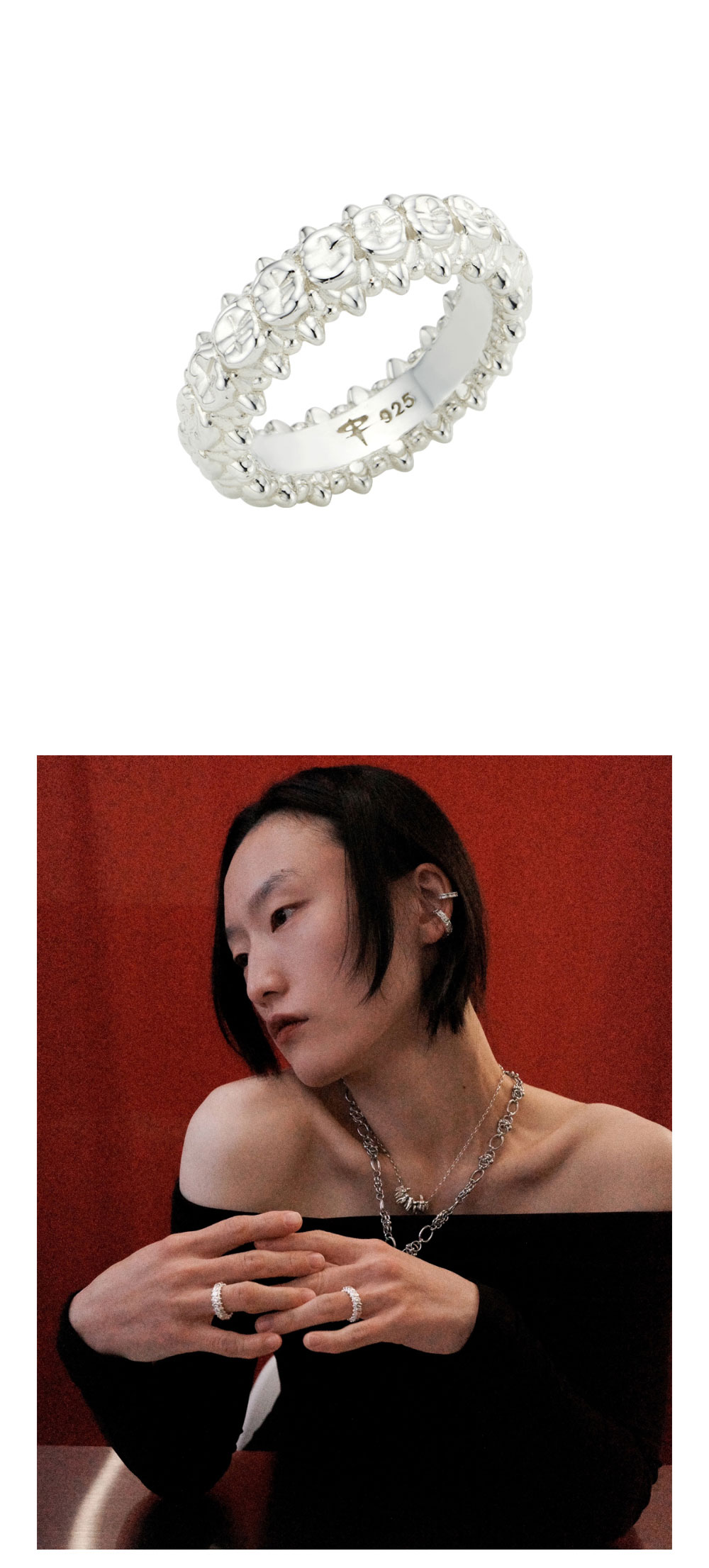 "섬세함 속에 깃든 강렬함." 자연에서 영감을 받은 유려한 곡선은 마치 꽃잎이나 덩굴을 연상케 합니다. 부드러움과 힘의 대조를 표현하며, 손가락 위에서 섬세한 조화를 완성합니다.