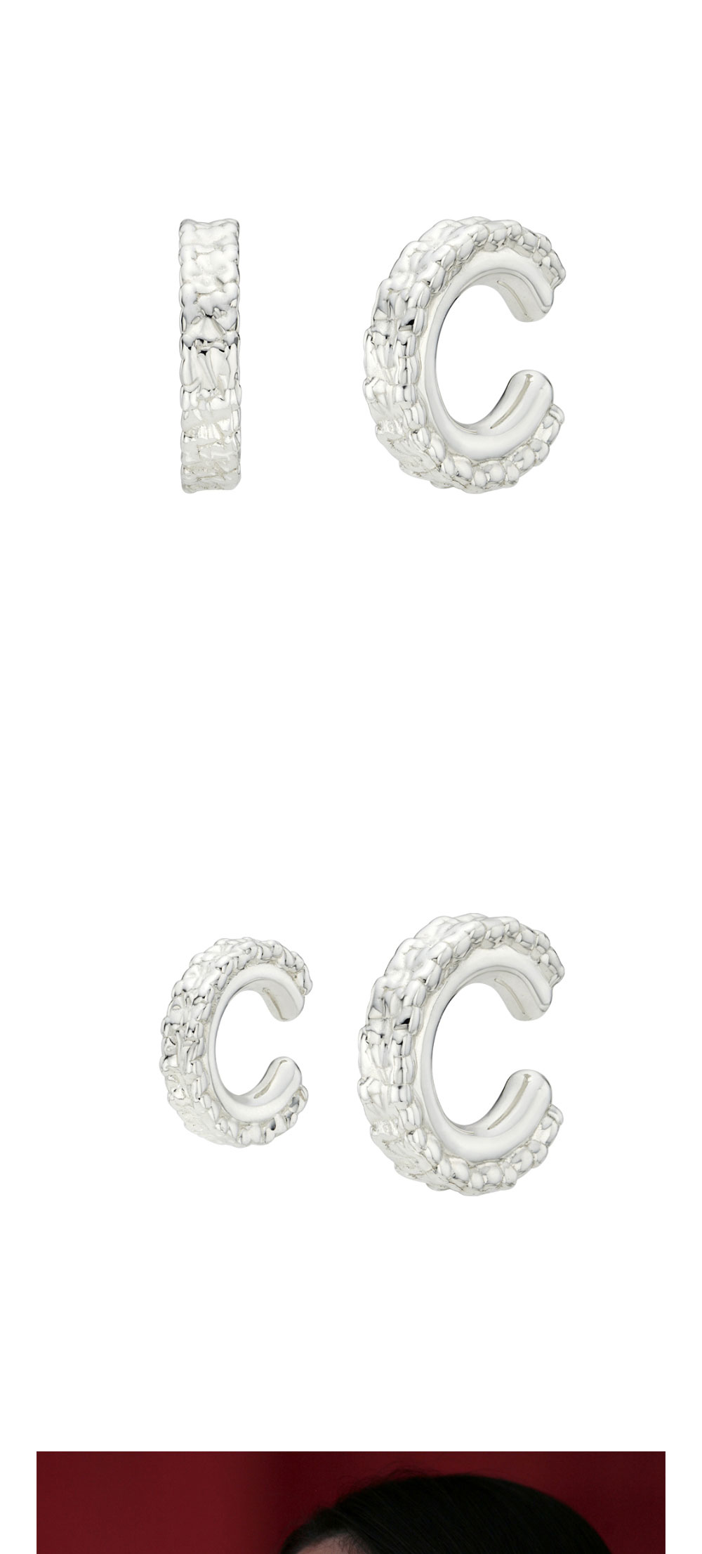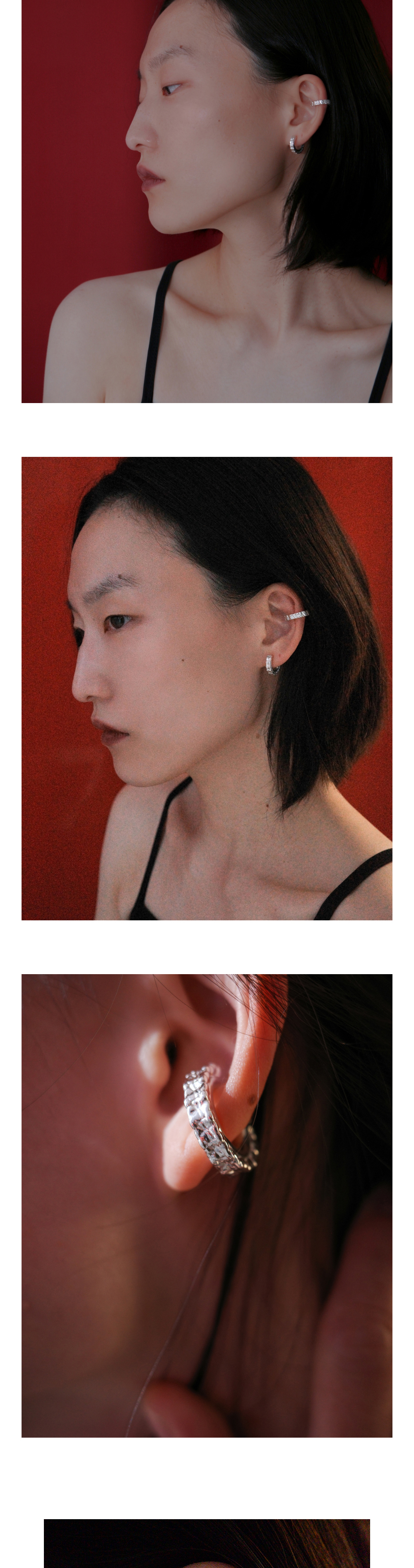 "결단의 순간을 형상화한 이어커프." 입체적인 곡선과 절제된 디테일로 강렬한 존재감을 더합니다. 크기(S, L)에 따라 다른 무드와 착용감을 느낄 수 있습니다. 심플하지만 강인한 에너지가 깃든 디자인입니다.