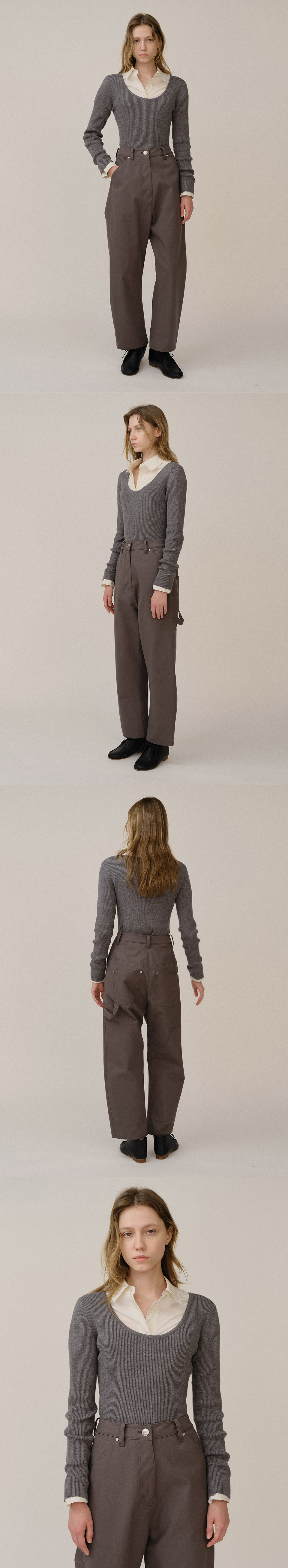 킨더살몬 우먼 라운드 스웨터 멜란지 그레이