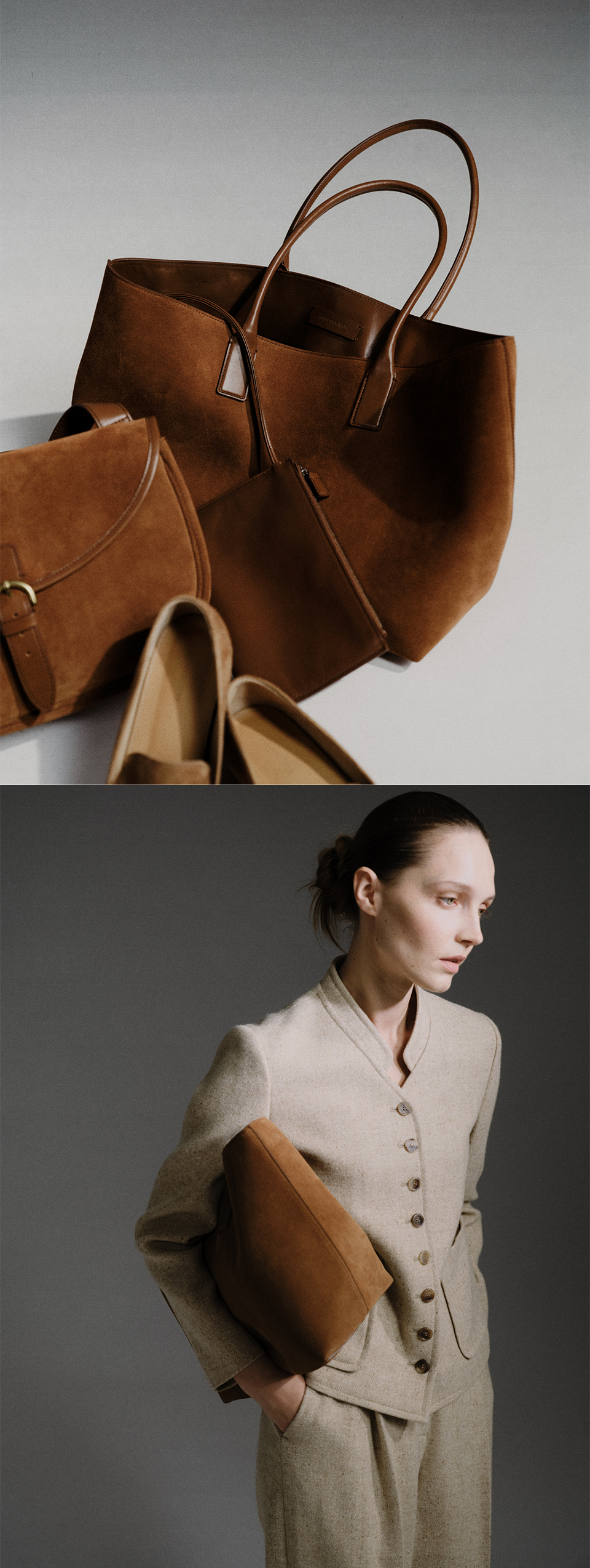 킨더살몬 우먼 마고 스웨이드 토트 백 카라멜