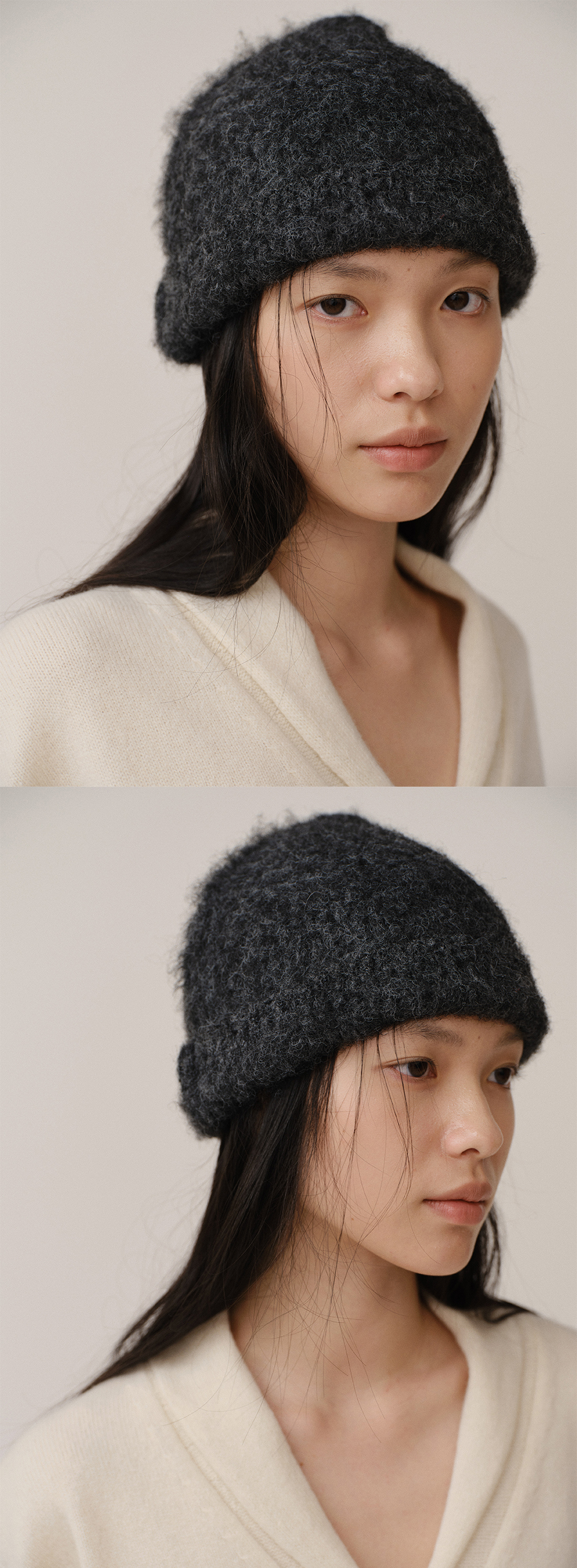 킨더살몬 우먼 니트 비니 차콜