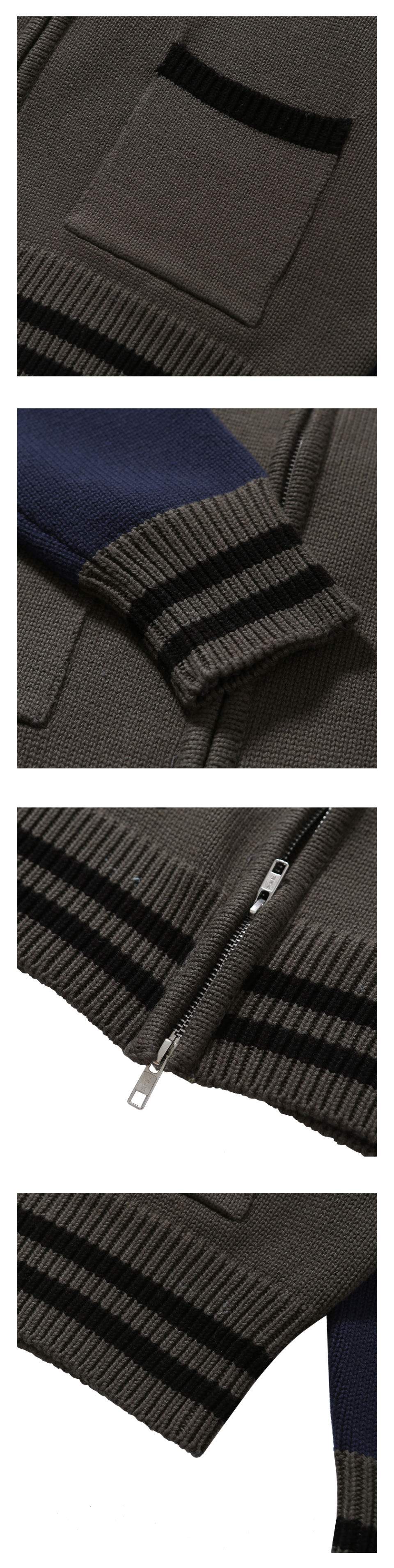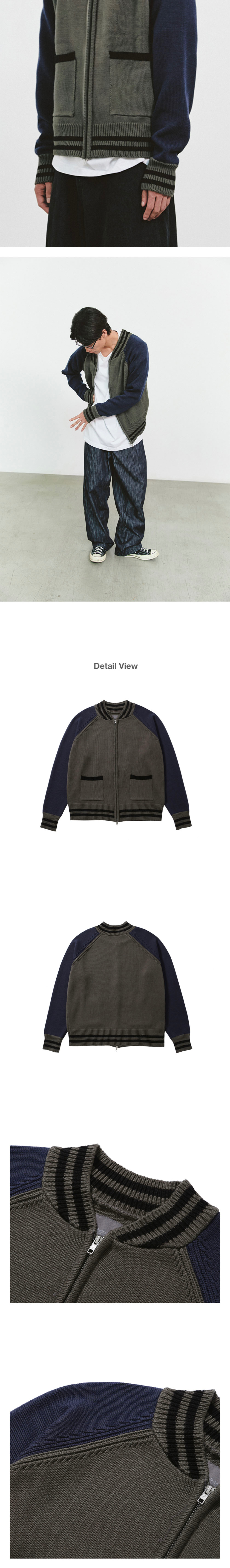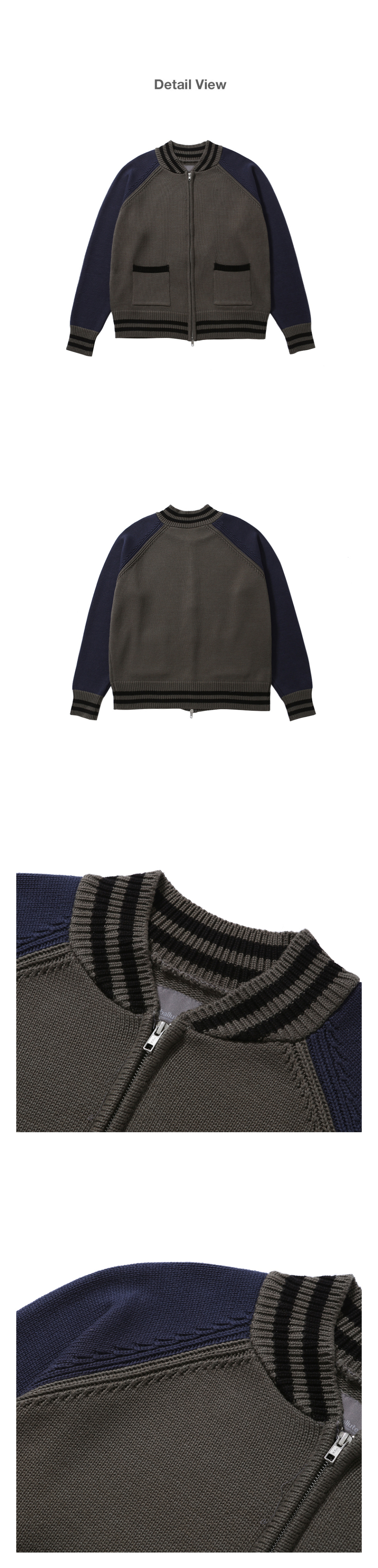 발루트 베이스볼 니트 집업 가디건 올리브 네이비