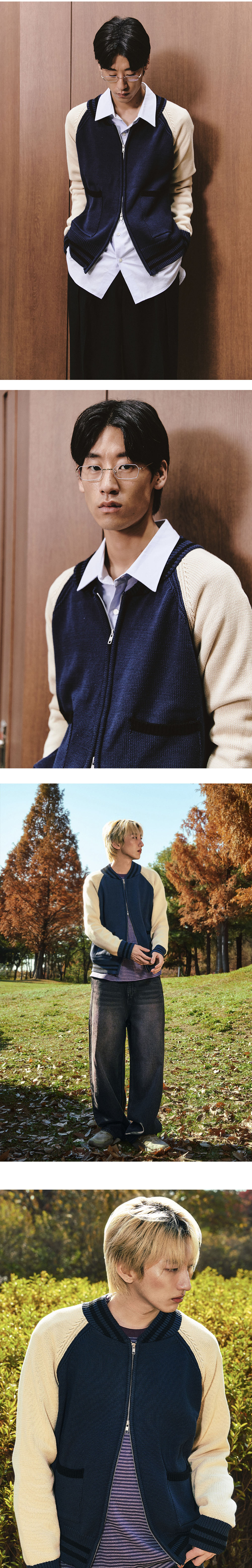 발루트 베이스볼 니트 집업 가디건 네이비 아이보리