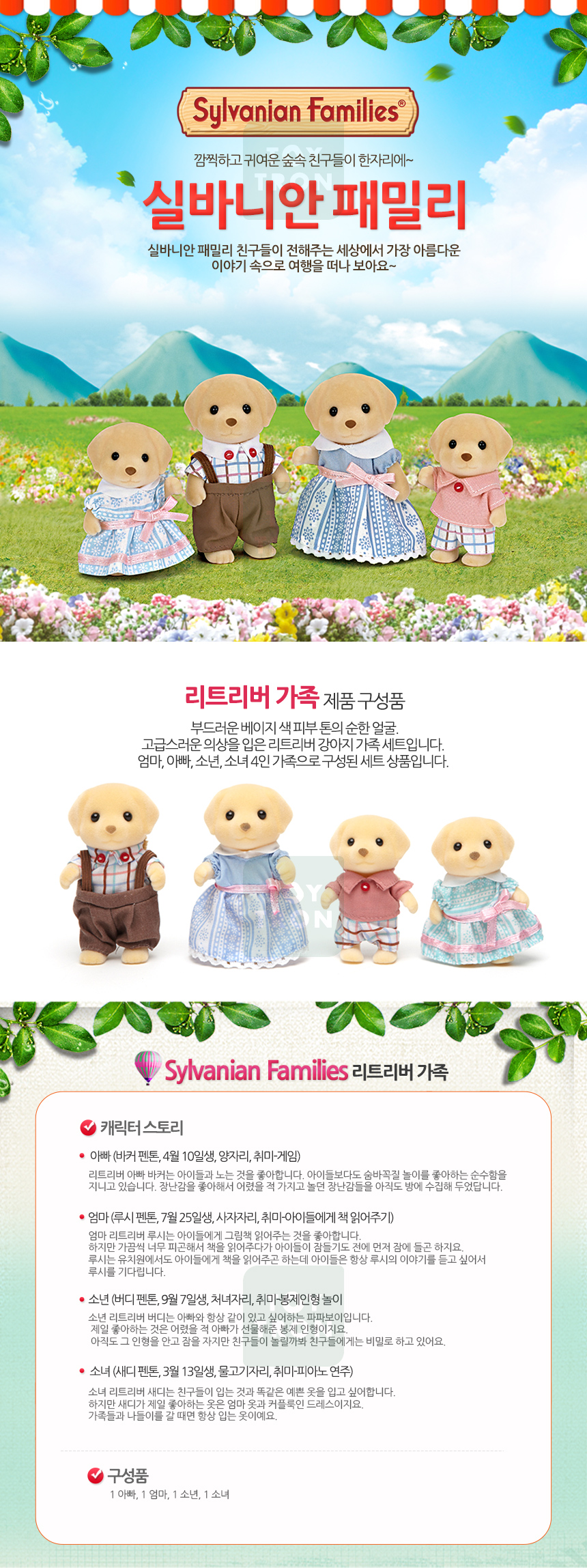 * 순한 인상과 고급스러운 의상으로 강아지를 좋아하는 한국시장에서 반응이 기대되는 상품! * 실바니안 가족인형 시리즈와 수집 마니아들에게 좋은 상품!