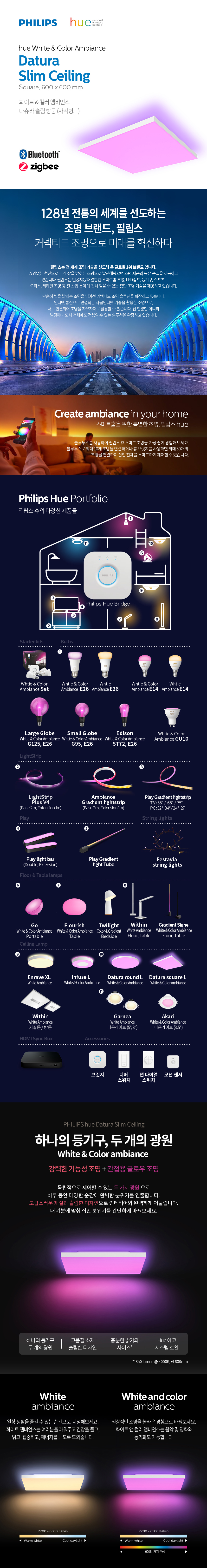 필립스 휴 화이트&컬러 앰비언스 다츄라 스퀘어 LED 사각 방등 거실등
