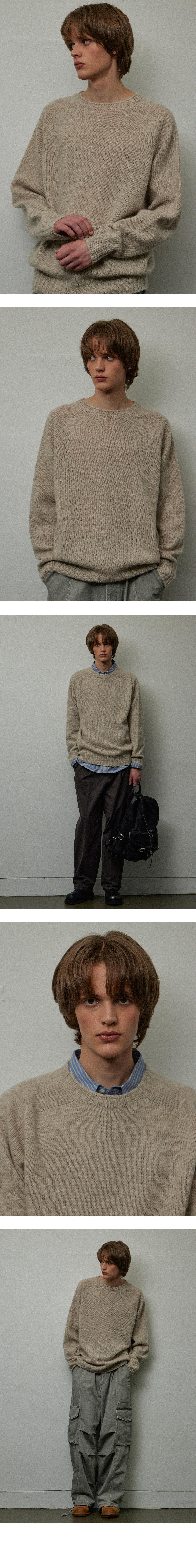 LEARVE Wholegarment Wool Shaggy Dog Knit Pale Beige
