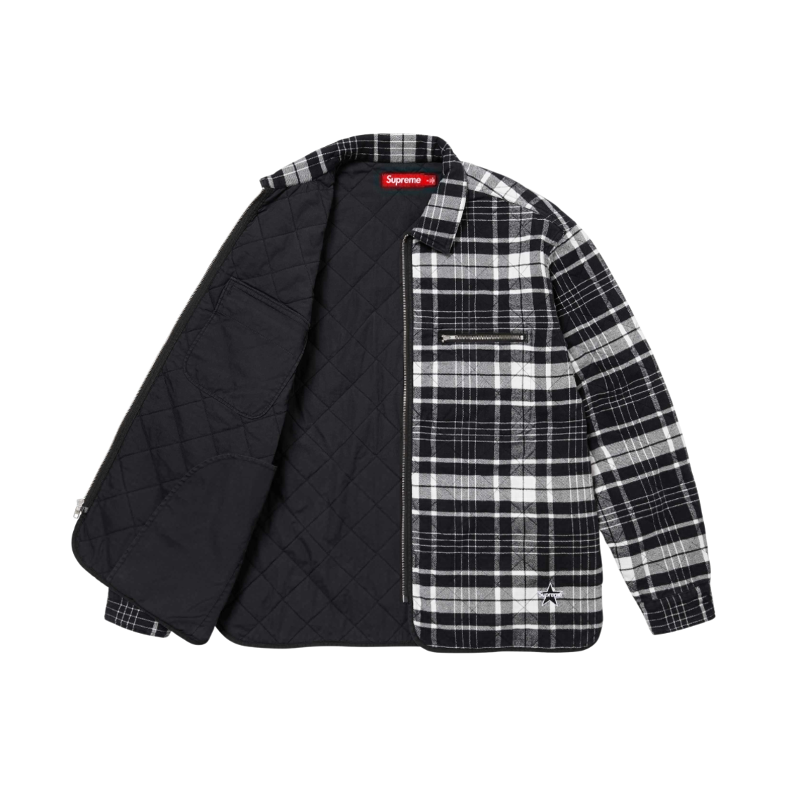 Supreme Quilted Flannel Zip Up Shirt Black - 24FW