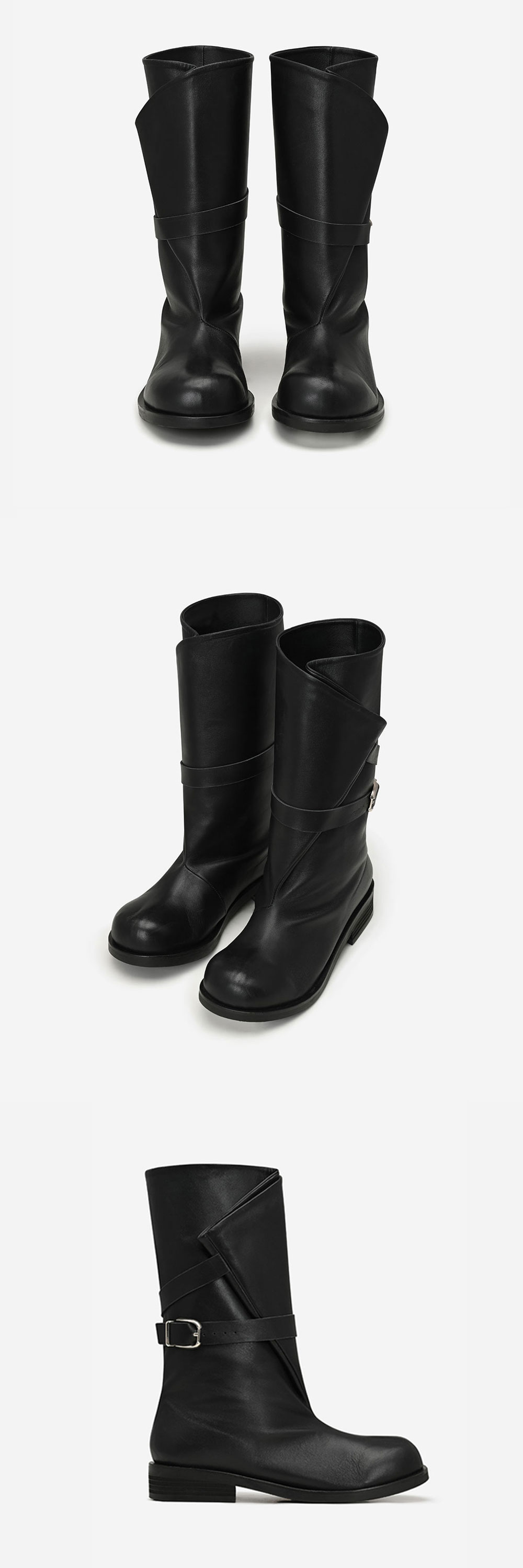*슈즈는 주문 제작 상품으로, 주문 완료일로부터 제작 완료까지 10-14일이 소요됩니다. 구매 시 참고 부탁드립니다. 블랙 컬러의 부츠는 미니멀하면서도 엣지 있는 디자인으로 시크한 무드를 강조하며, 브라운 스웨이드 버전은 따뜻하고 부드러운 분위기로 연출하기에 적합합니다. 슈즈 입구 둘레에 넓은 여유분량을 주어 한 번 접어 측면으로 감은 플랩 디테일 위로 지나가는 가죽 스트랩과 버클이 더해진 이 부츠는 클래식한 무드에 독특한 디테일을 지니고 있어 어떤 룩에도 매력적인 포인트가 될 수 있습니다.