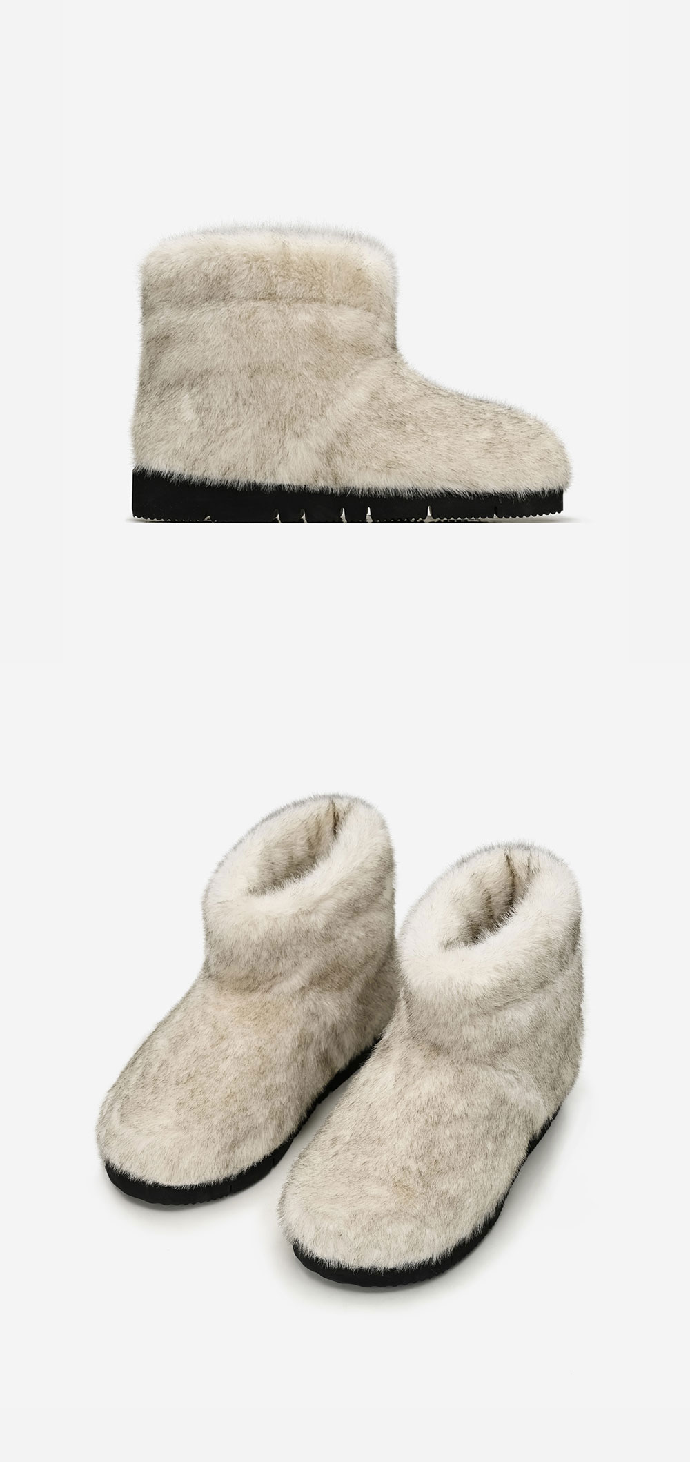 * 슈즈류는 1:1 주문제작으로 단순변심에 의한 교환 및 환불이 불가능합니다. * 슈즈류는 1:1 주문제작으로 7-14일 소요되는 점 참고부탁드립니다. FO FO HAIRY BOOTS는 SHORT, LONG 버전으로 선택하셔서 구매가 가능합니다. 사용한 원단은 POLY 100%로 일반적인 퍼가 아닌 장모와 단모가 함께 이루어져 있어 마치 여러 겹의 레이어가 쌓인 듯 높은 감도의 퍼를 사용했습니다. 볼륨감 있게 둥근 앞 코와 부드럽게 이어지는 발등 실루엣으로 앞 코가 퍼의 풍성함을 더욱 돋보일 수 있게 라인을 수정하였고, 또한 안감은 가죽이 아닌 겉 감과 동일한 퍼 원단을 사용하여 부드럽고 따듯한 착용감을 느끼실 수 있습니다.