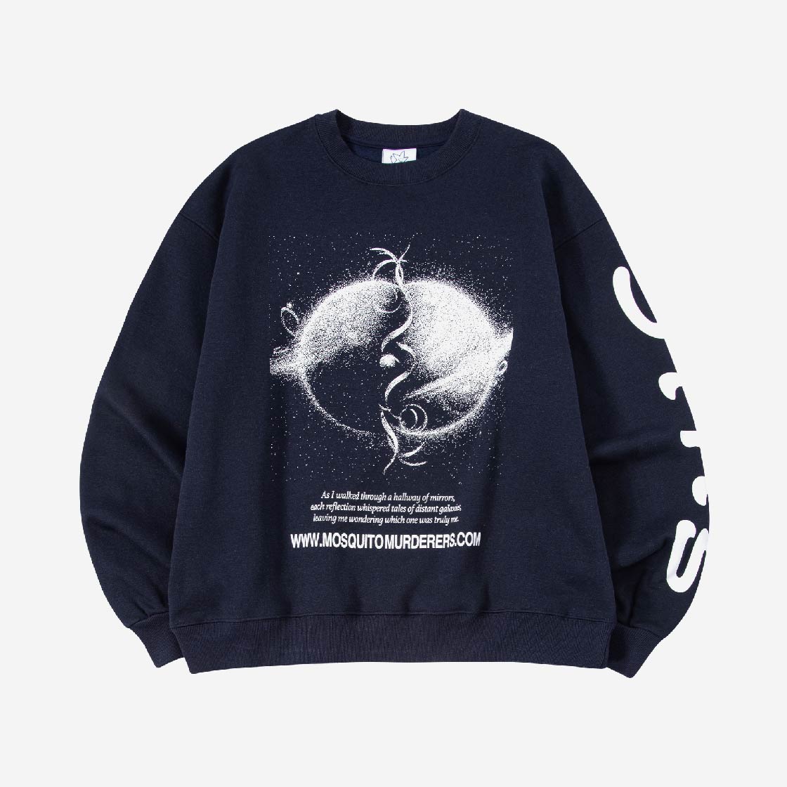 170cm(5’6”) / 59kg(130lb) WEARS SIZE 1 178cm(5’8”) / 55kg(121lb) WEARS SIZE 2 - Cotton 80% Polyester 20% 기모원단으로 도톰하고 소프트한 텍스처 - 목 늘어남을 방지하기 위한 넥라인 해리처리 - 갈라삼봉 봉제법으로 내구성이 우수하며 완성도 높은 실루엣 - 넓고 두꺼운 밴딩을 이용한 소매 및 끝단 시보리 처리 - 덤블워싱, 텐타 가공을 거쳐 오랜시간 착용 및 세탁시에도 옷의 변형을 최소화 - 벗겨지거나 바래지 않는 선명한 프린팅 Mosquito murderers의 모든 의류는 한땀 한땀 사람의 손으로 탄생됩니다. 세탁시 케어라벨을 확인해 주시고, 프린팅의 손상을 최소화 하기 위해 옷을 뒤집어 세탁하는 것을 권장합니다.