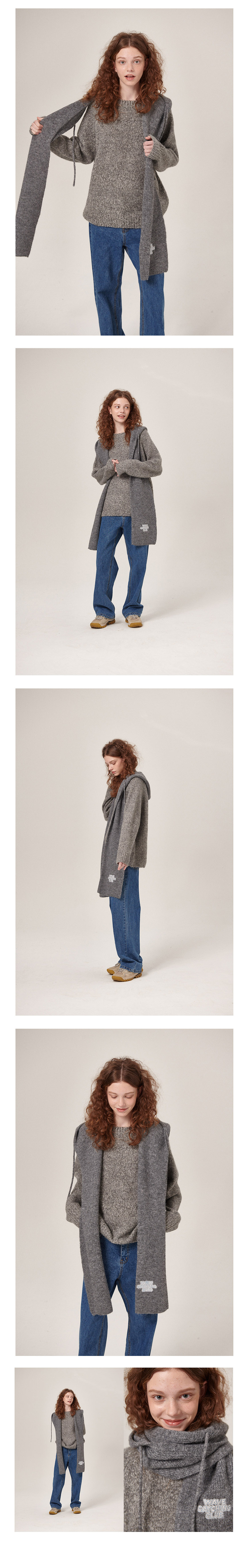 플랫웨이브 바트 울 라운드 니트 차콜