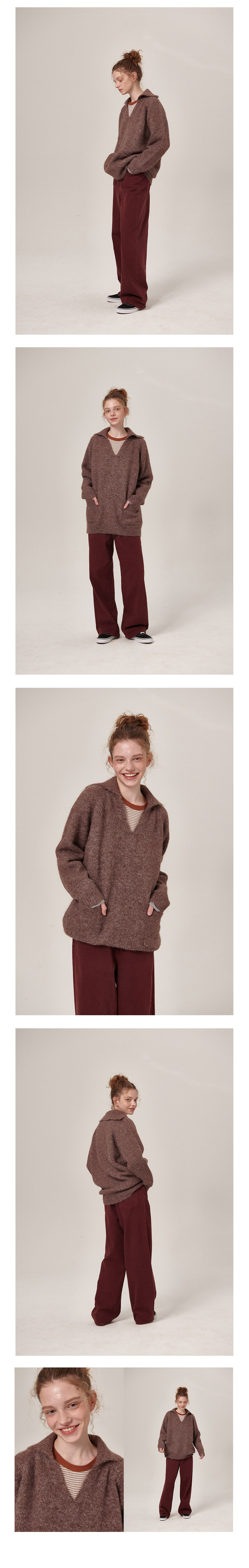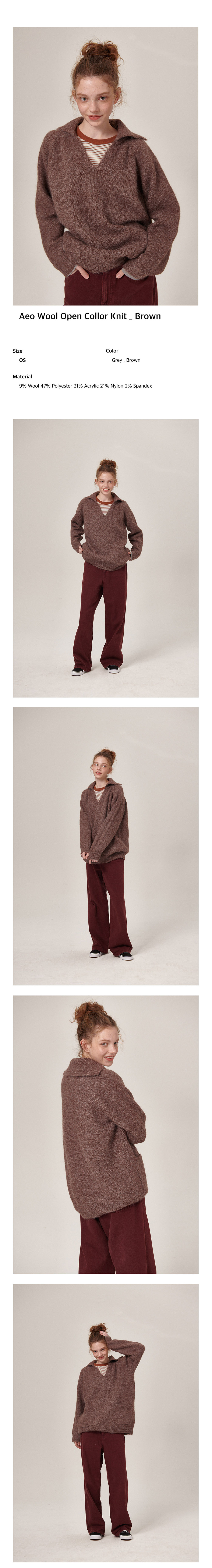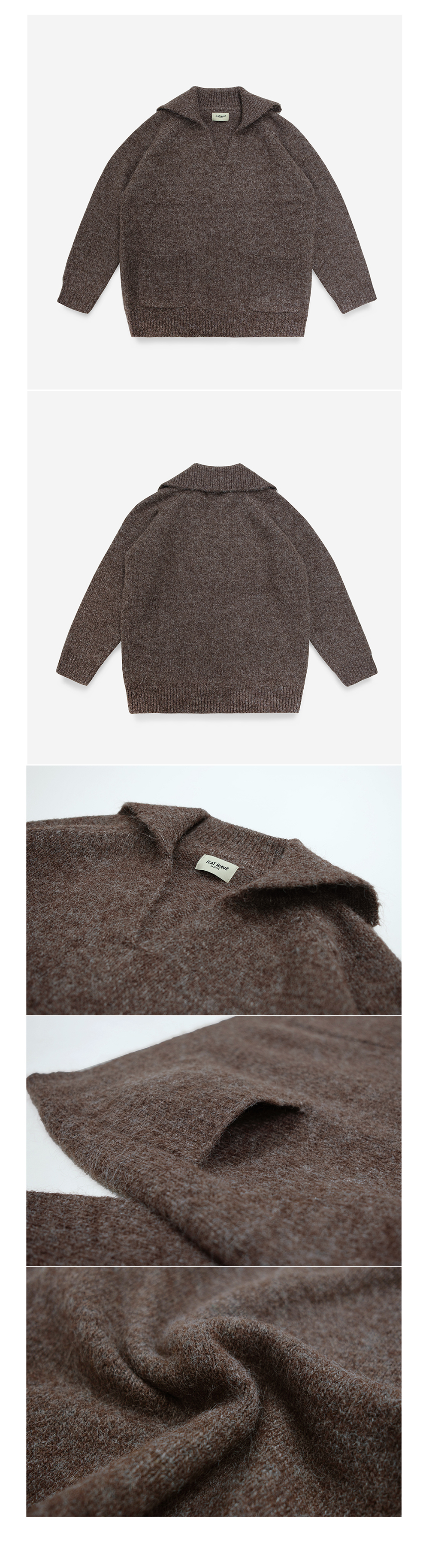 플랫웨이브 아에오 울 오픈 칼라 니트 브라운
