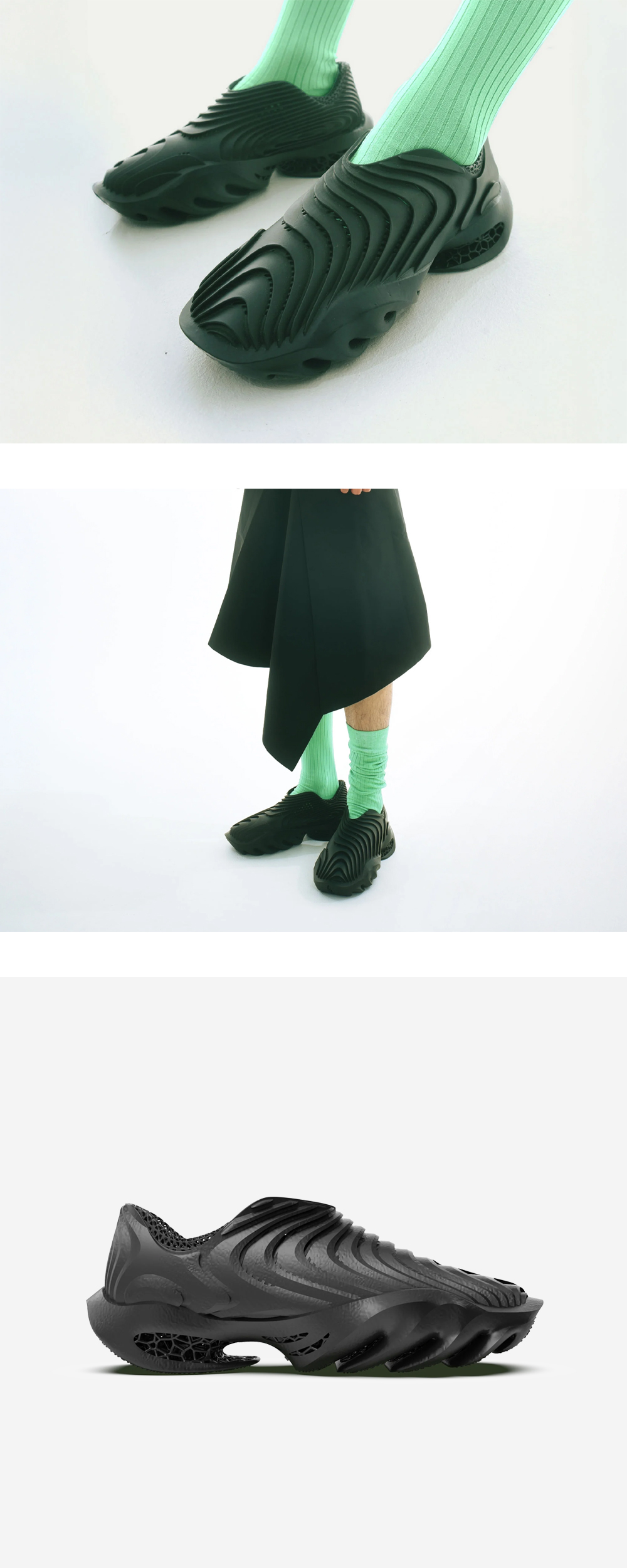 지층 암석에서 영감을 받은 얼라이브폼의 스트라텀 팽입니다. - 슬림/풋볼 타입 실루엣 - 독특한 송곳니 모양의 미드솔 디자인 - 3D 프린팅을 통해서만 제작 가능한 복잡한 계층 구조