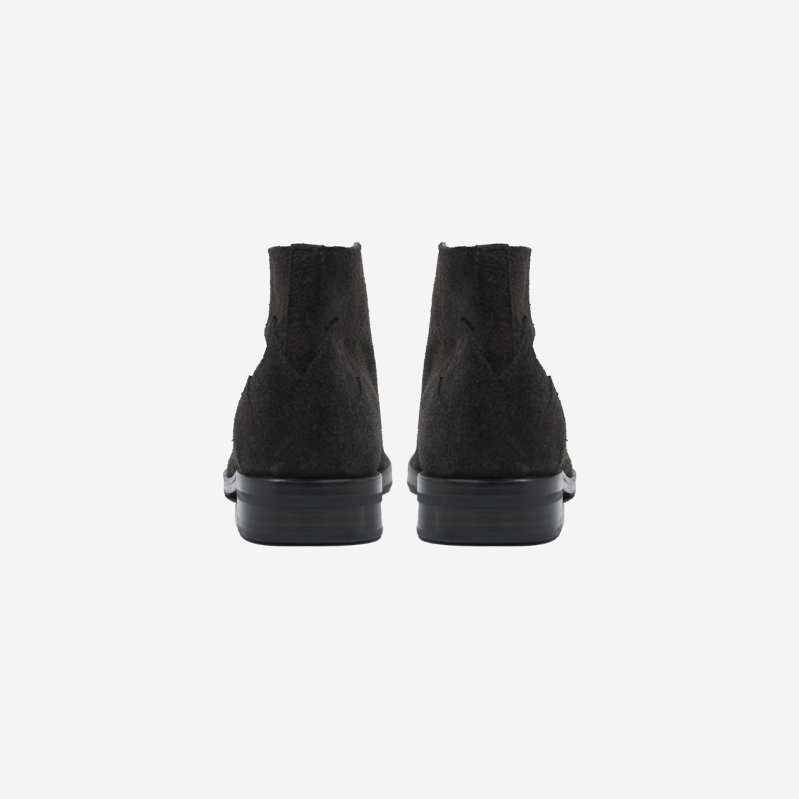 *본 제품은 예약주문 제품으로, 9/30(화) 11:00 ~ 10/7(화) 11:00까지 접수를 진행합니다. *주문 순서에 따라 발송까지 7~8주 소요됩니다. *11/26(수) ~ 11/28(금)까지 발송 예정 *밑창이 사진과 같이 변경되었으니 참고 부탁드립니다. *개인차 있으나 정사이즈/반업 추천드립니다. 0 / 1 / 2 / 3 / 4 각 사이즈 245 / 255 / 265 / 275 / 285사이즈감입니다. 직원 A: 2(265) 착용 / 에어포스, 척테일러 260 착용 / 1: 정사이즈 / 2: 멋스러운 업사이징 직원 B: 3(275) 착용 / 에어포스, XT-6 270 착용 / 2: 정사이즈 / 3: 힐슬립 있으나, 멋스러운 업사이징 desrt boots 폴리테루 디자인 기조에 맞춰 새롭게 해석한 데저트 부츠. 베이지 스웨이드 위로 수작업을 통해 더티 가공 적용. 엔지니어드 부츠 베이스로 다듬어 낸 쉐입. 부드러운 결감 느껴지는 카우 스웨이드 사용, 밑창은 고급 홍창과 비브람창 사용.