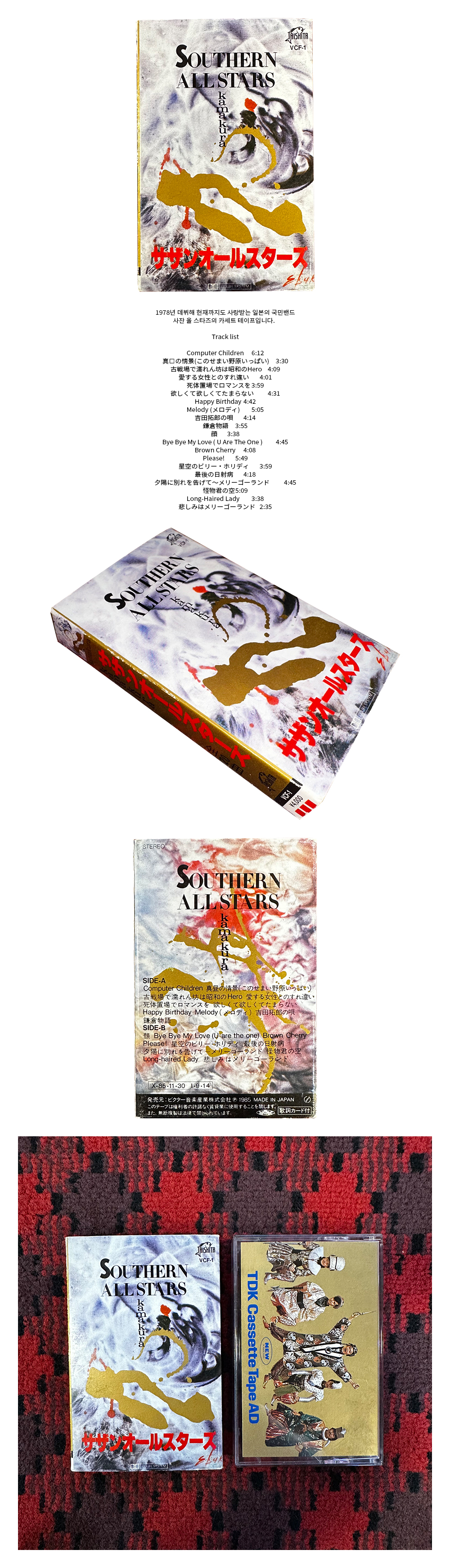 1978년 데뷔해 현재까지도 사랑받는 일본의 국민밴드 사잔 올 스타즈의 카세트 테이프입니다.