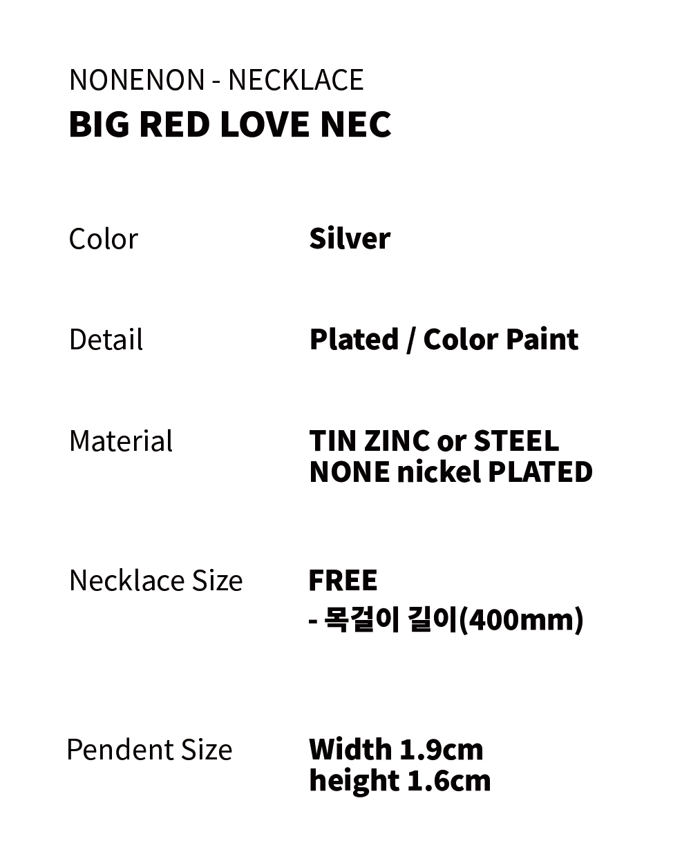 논논 빅 레드 러브 넥클리스