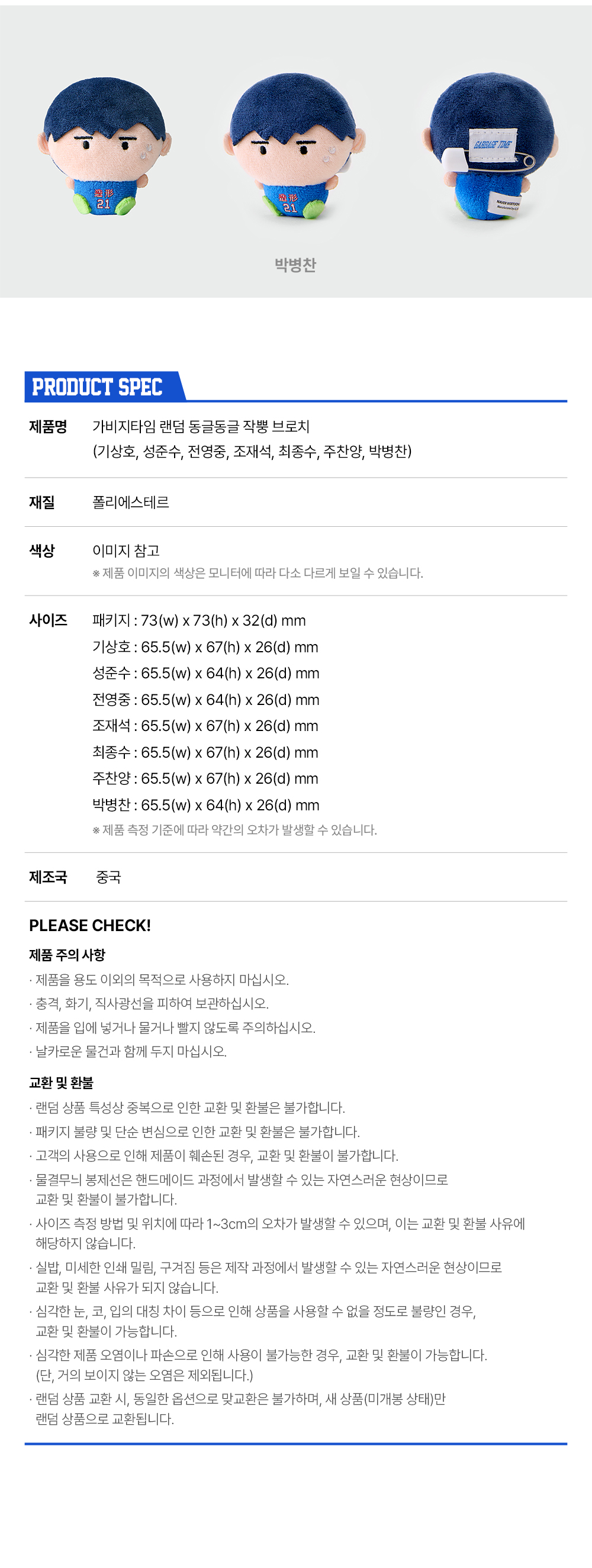 가비지타임 랜덤 동글동글 작뿡 브로치 단품