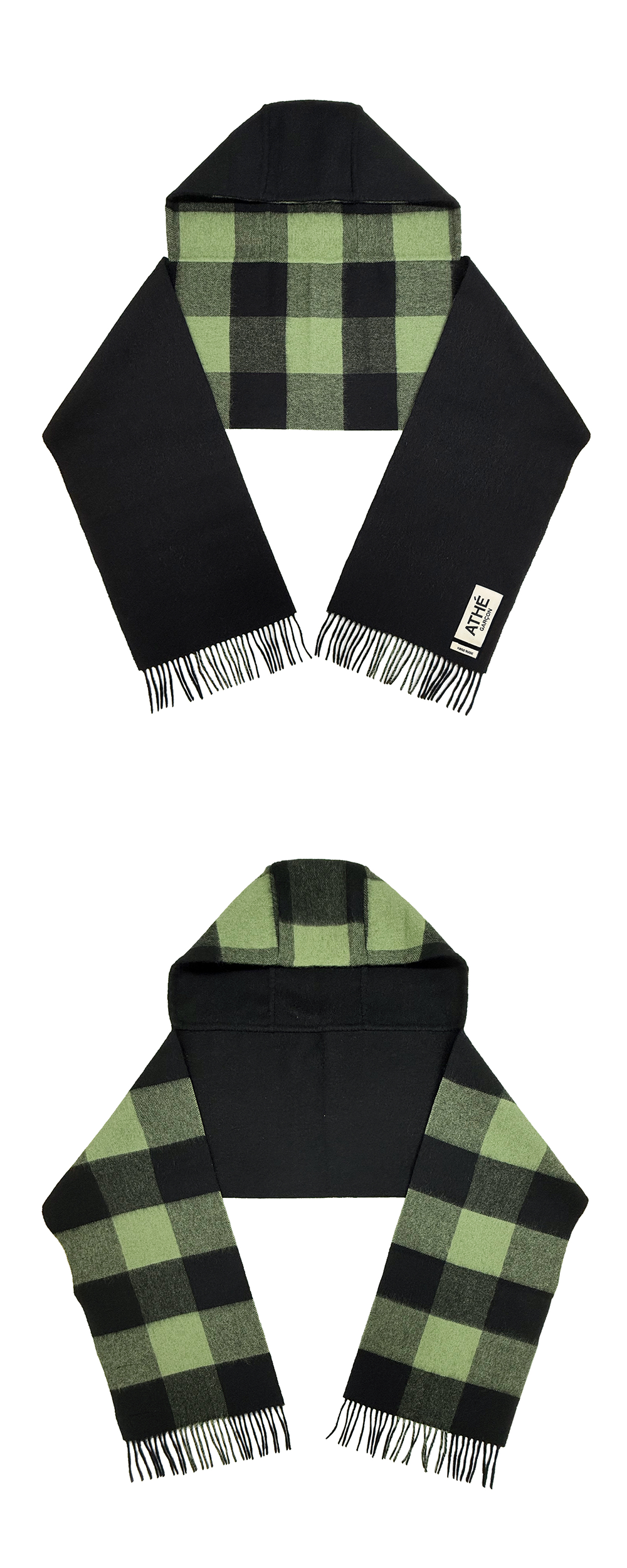 아떼 가르송 리버시블 울 후드 머플러 블랙