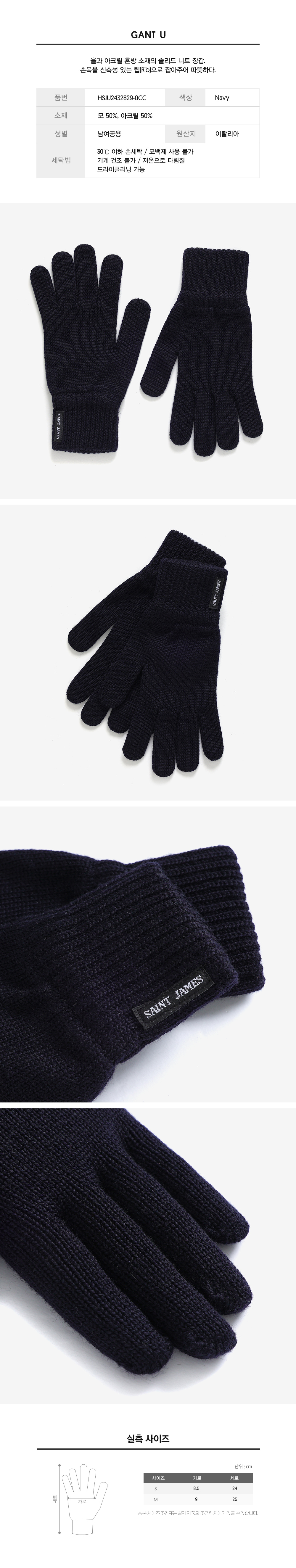울과 아크릴 혼방 소재의 솔리드 니트 장갑. 손목을 신축성 이쓴 립(Rib)으로 잡아주어 따뜻하다.