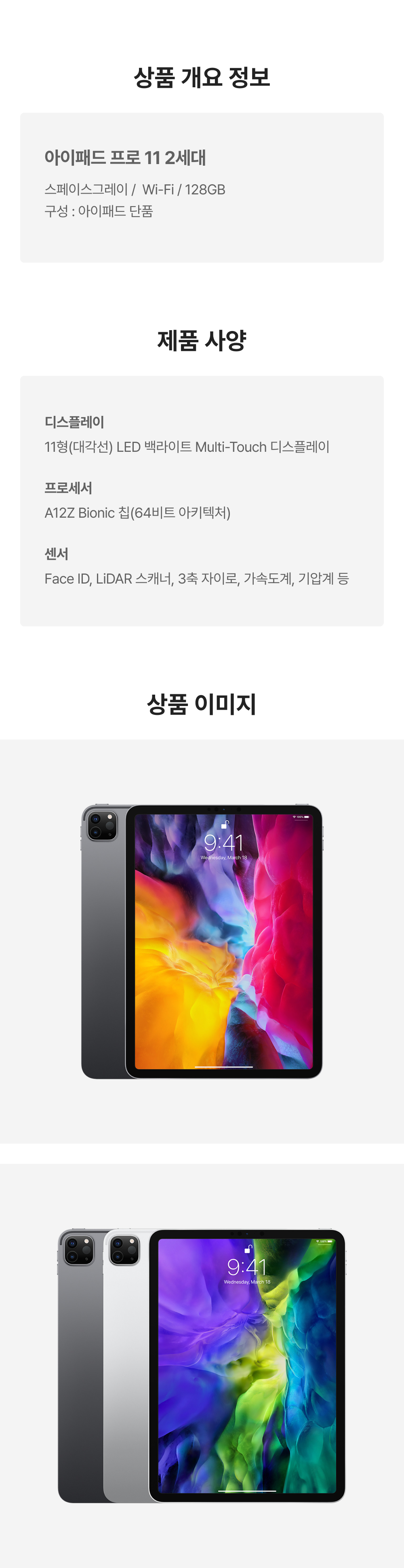 [S등급] 리퍼비시 아이패드 프로 11 2세대 wifi A12Z Bionic 128기가 스페이스그레이