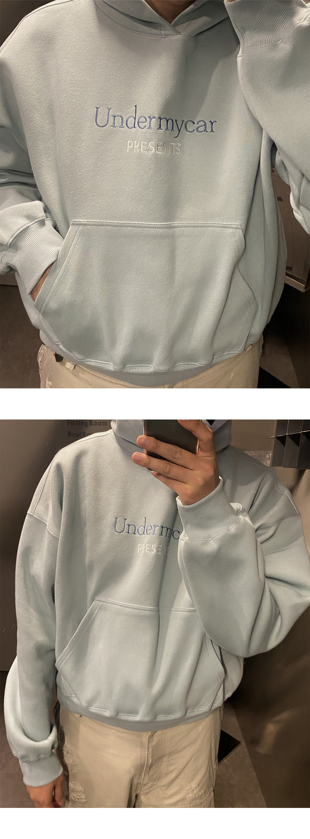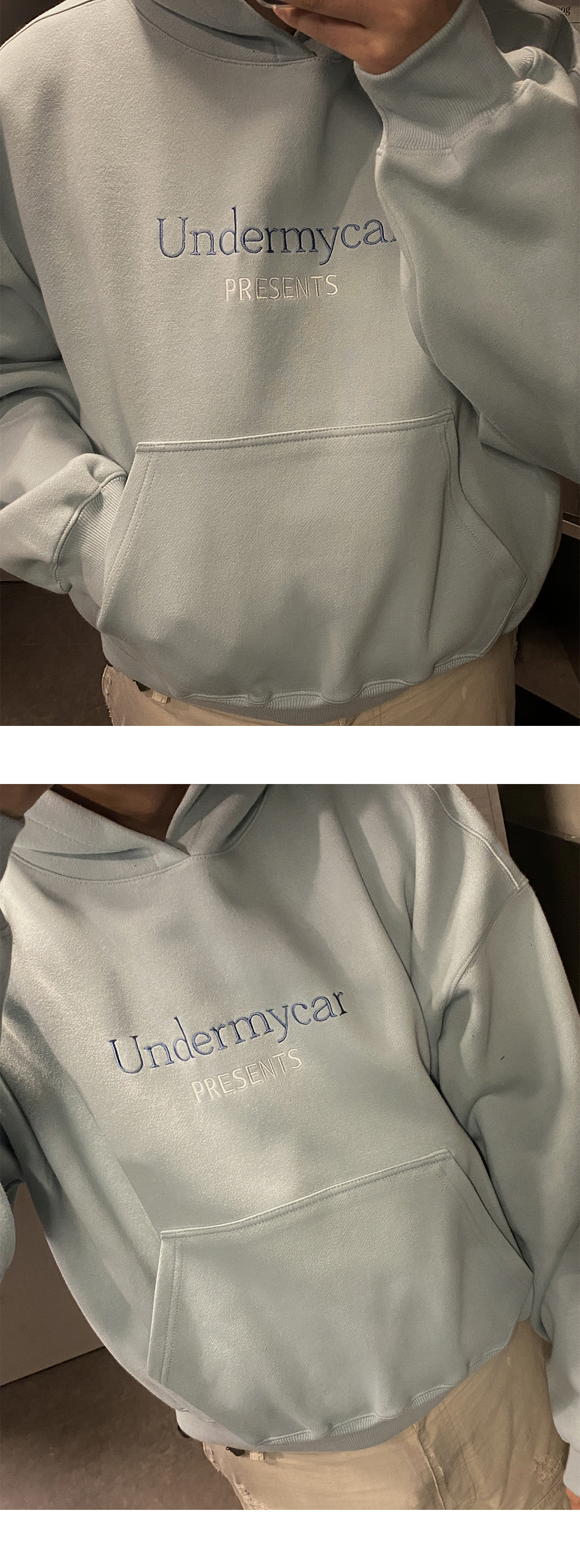 언더마이카 피오씨 투 톤 클래식 로고 본디드 스웻 후디 민트 BL WT