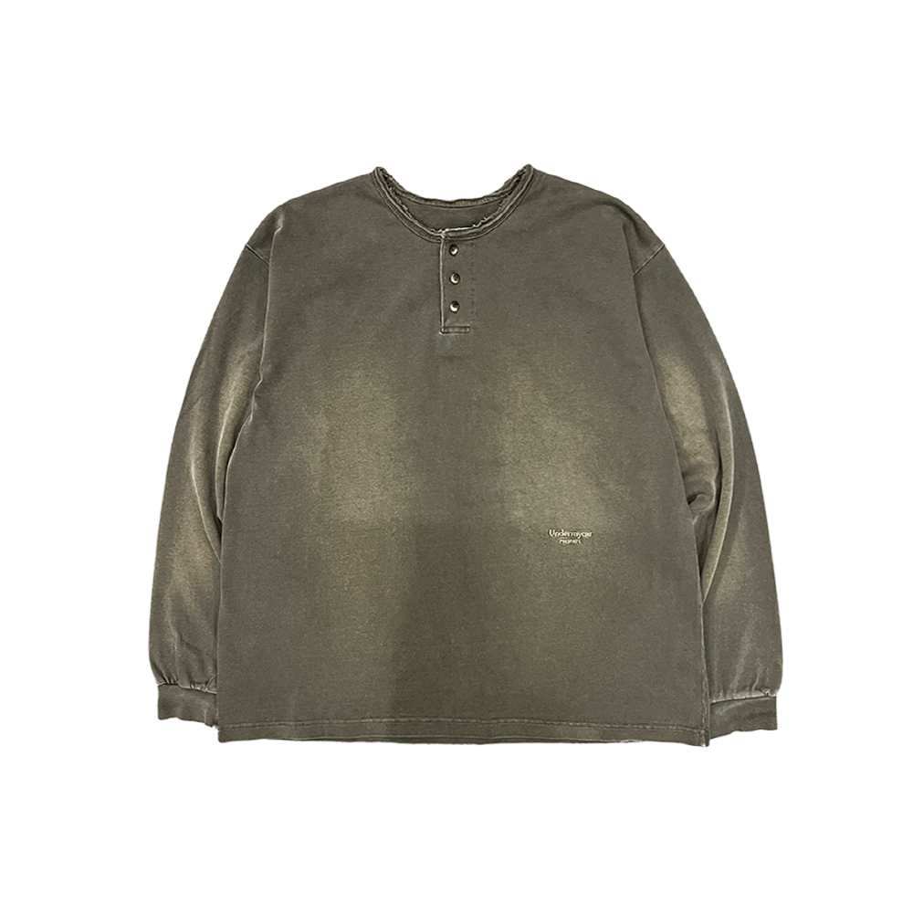 Undermycar Mu.89 Anti Fxxking Logo Play Brush Washed Henley Shirts Olive