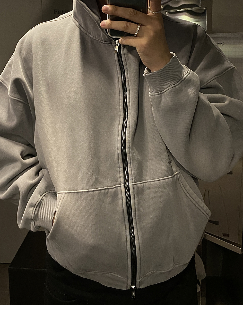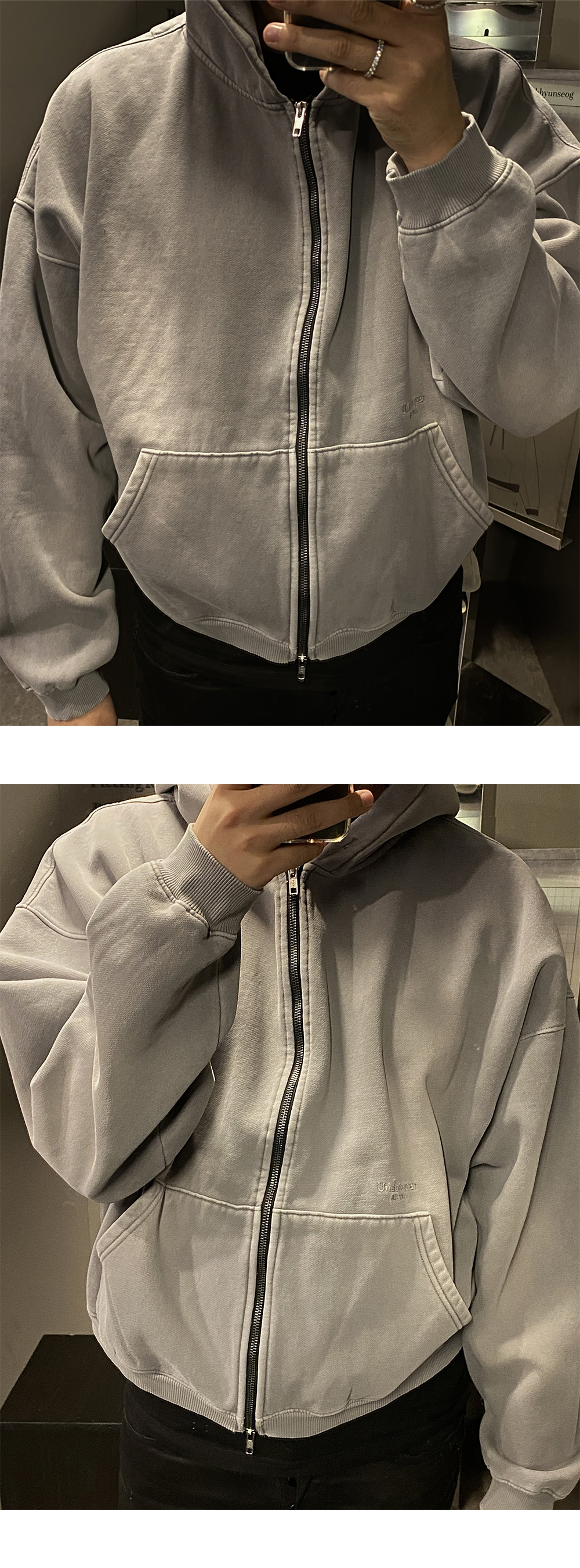 언더마이카 무.69 안티 Fxxking 로고 플레이 빈티지 브러시 워시드 후드 짚업 그레이