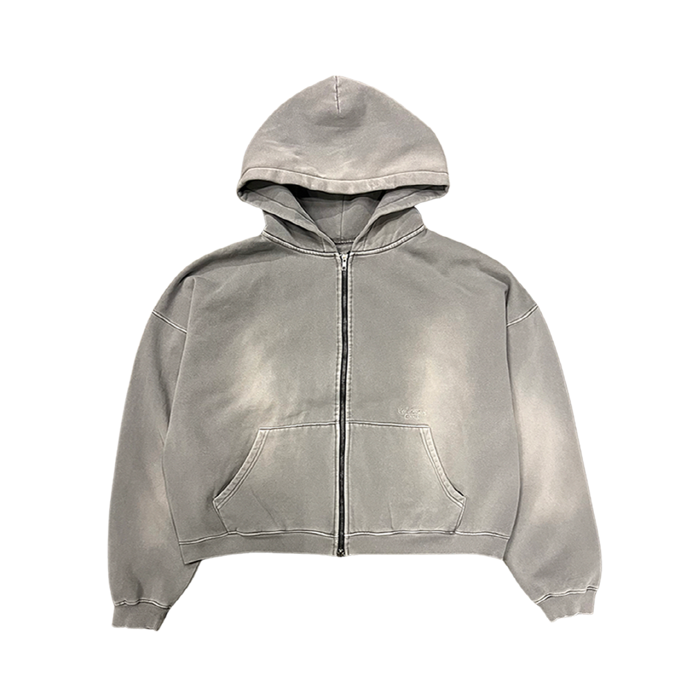Undermycar Mu.69 Anti Fxxking Logo Play Vintage Brush Washed Hood Zip up Gray