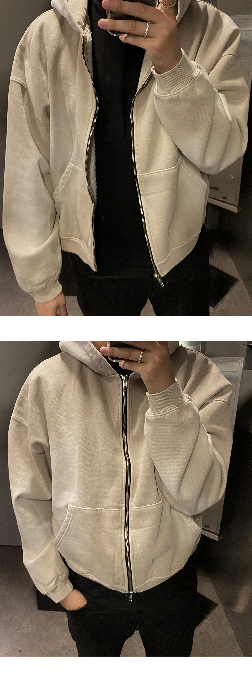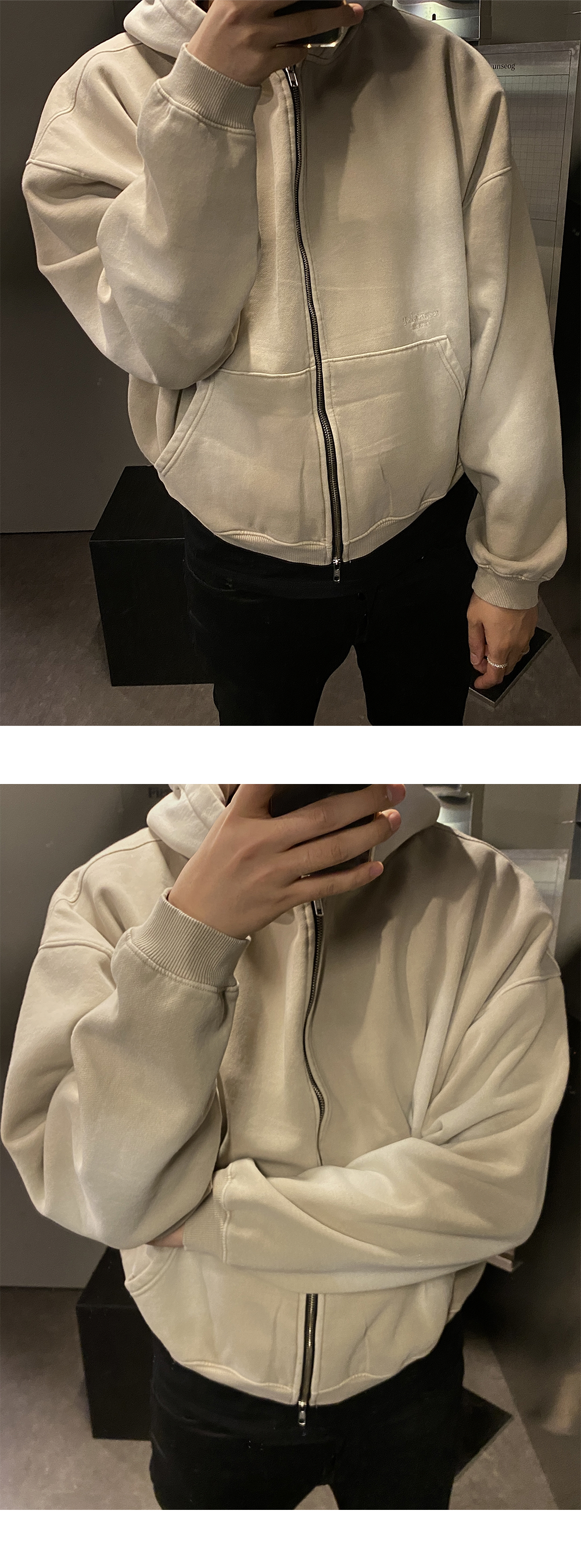 언더마이카 무.69 안티 Fxxking 로고 플레이 빈티지 브러시 워시드 후드 짚업 샌드