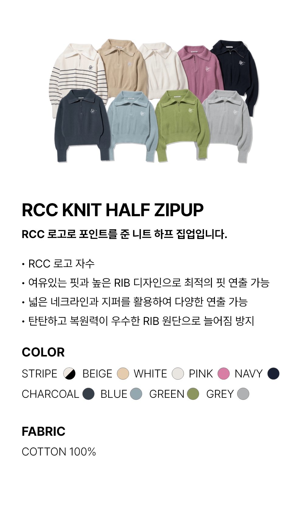 로씨로씨 RCC 니트 하프 집업 스트라이프