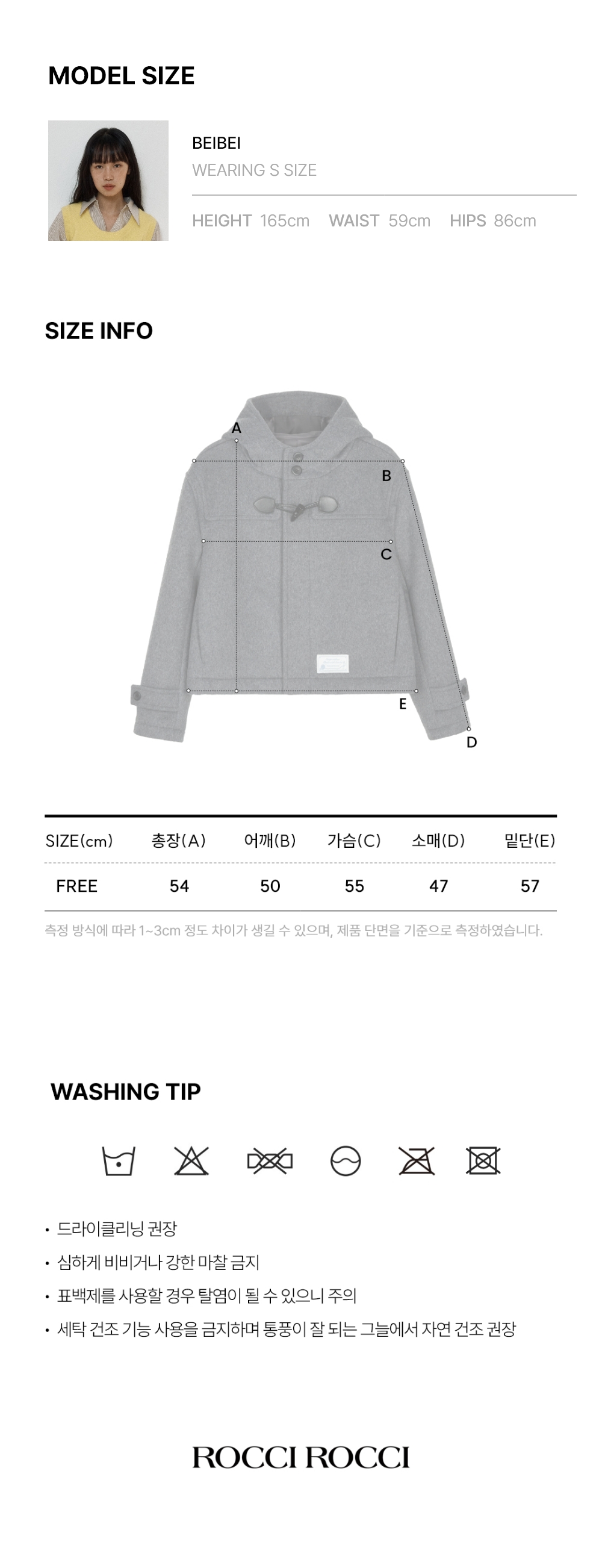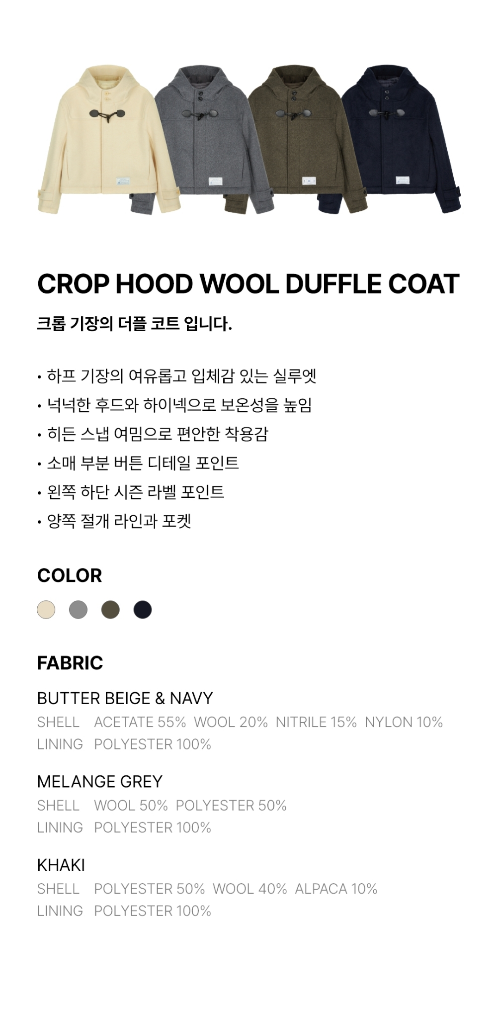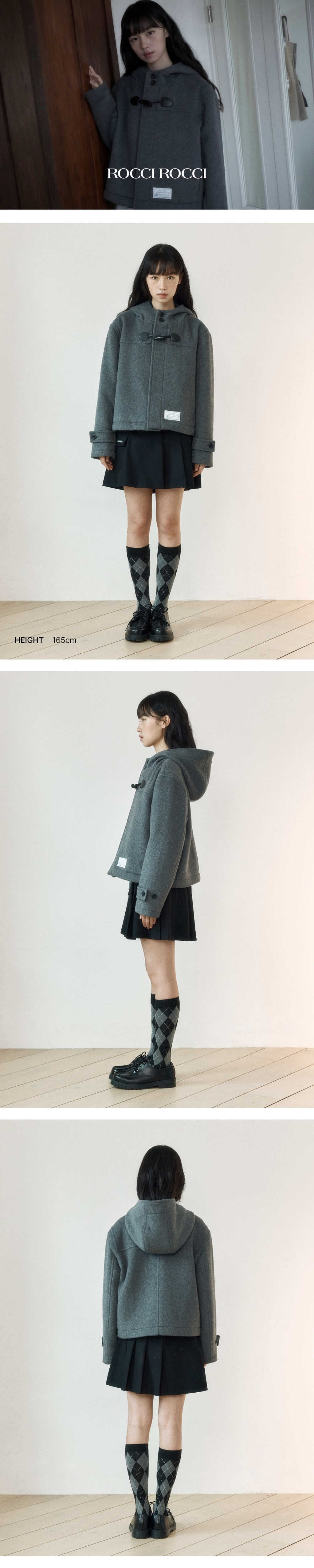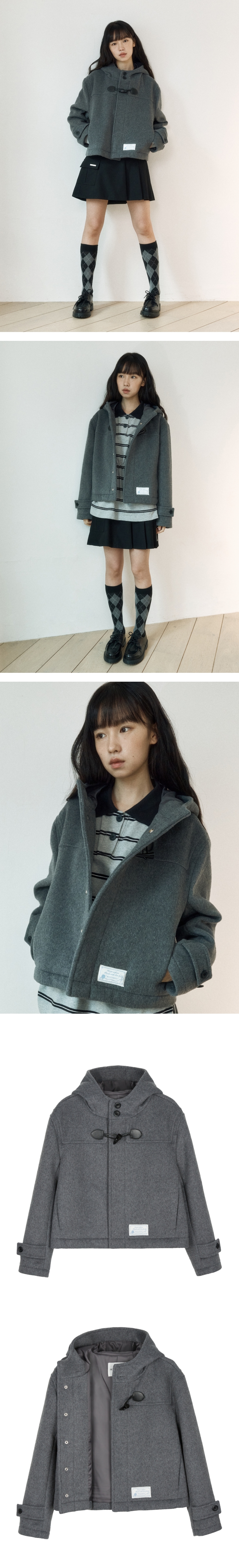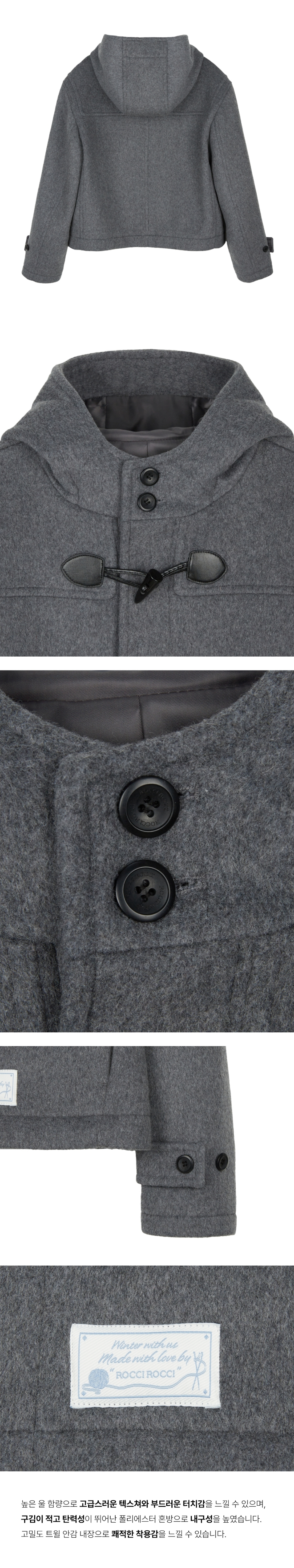 로씨로씨 크롭 후드 울 더플 코트 멜란지 그레이