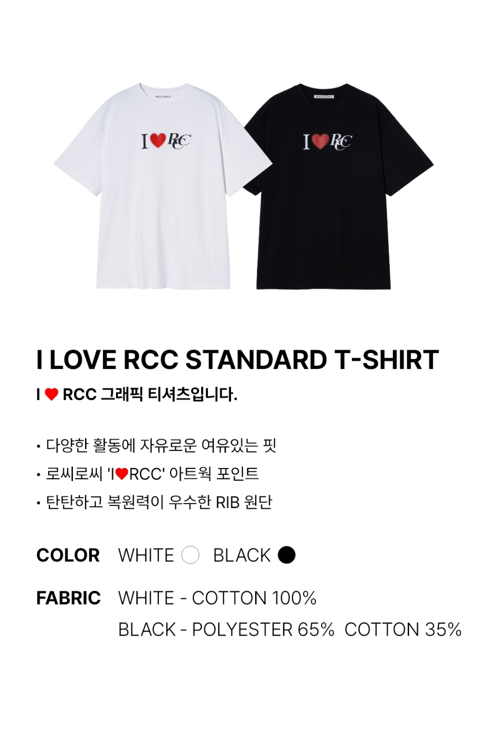 로씨로씨 아이 러브 RCC 스탠다드 반소매 티셔츠 화이트