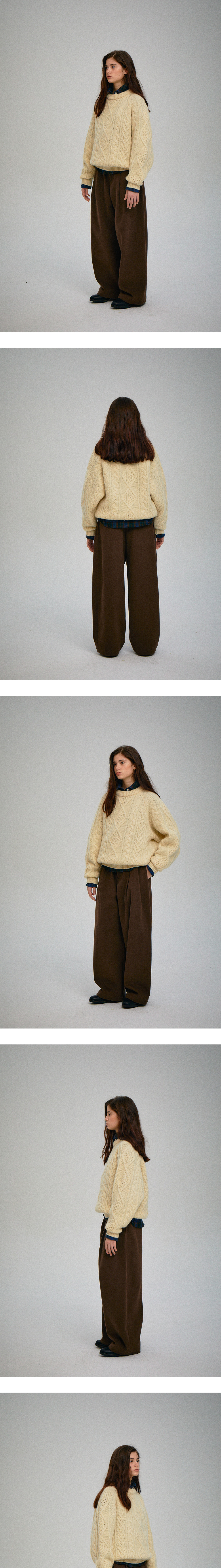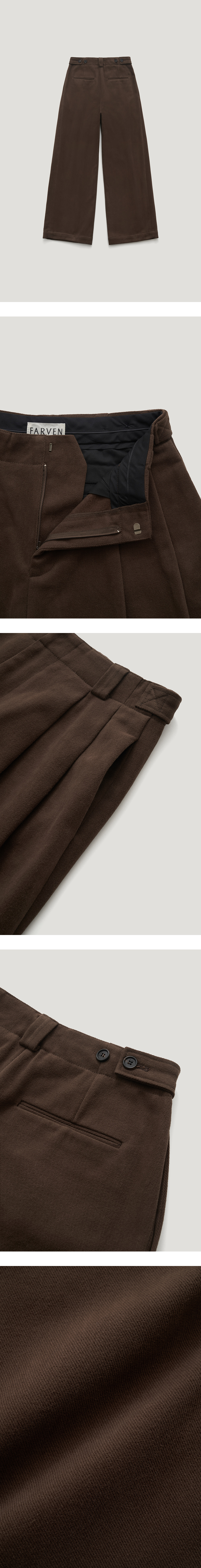 볼륨감이 돋보이는 실루엣에 투턱 디테일이 특징인 코튼팬츠입니다. 부드 러운 터치감의 피치기모원단이 사용되었고 탄탄하고 보온성이 우수한 제품 입니다. 허릿단 양쪽에 비조 장식과 로고각인이 새겨진 버튼디테일이 있으 며 허리에 맞게 사이즈 조절이 가능합니다. YKK 지퍼 플라이 여밈 구조로 마무리하였습니다.