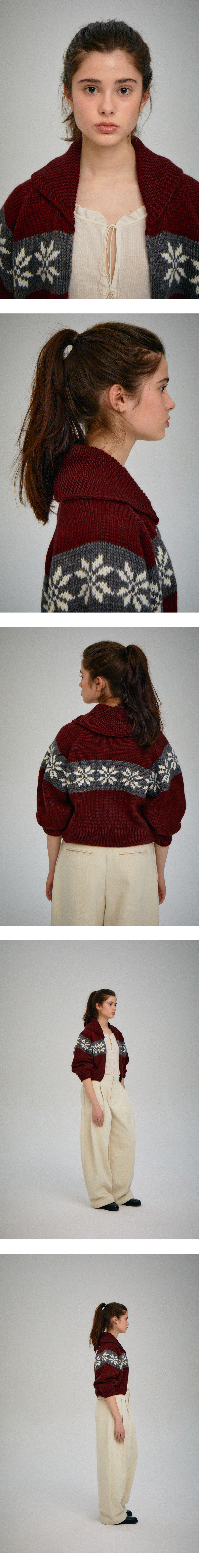 해당 제품은 1/14일부터 순차배송되는 상품입니다. 크롭한 기장감의 니트 가디건입니다. 가슴과 어깨라인에는 HOLIDAY PUP PY ZIP-UP CADIGAN과 동일한 눈꽃모양의 짜임으로 디자인에 포인트를 주었습니다. 8부 소매의 디자인으로 다른 이너들 또는 원피스와 레이어드시 에 활용도가 높은아이템입니다.