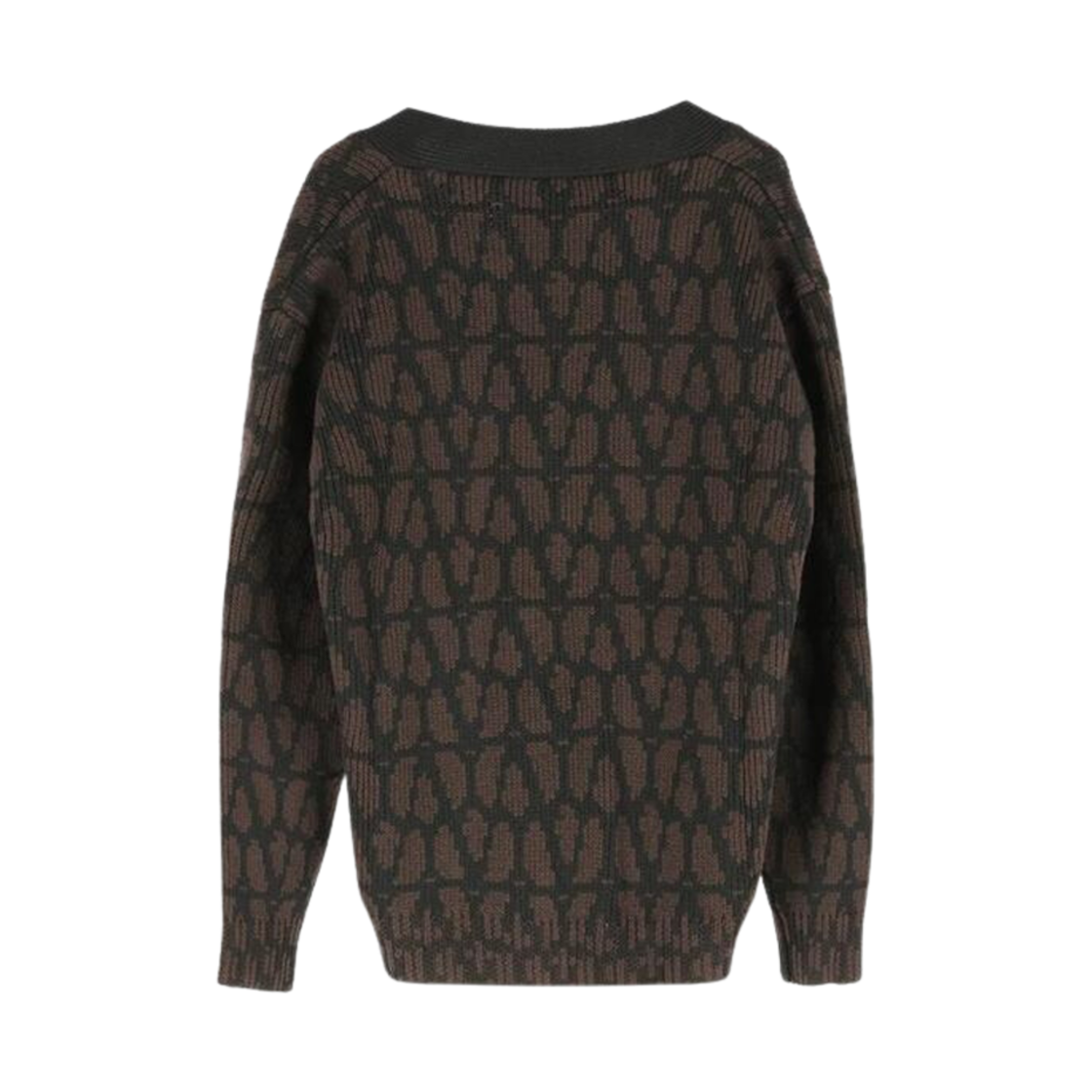 Valentino Wool Cardigan with Toile Iconographe Pattern Ebony Black