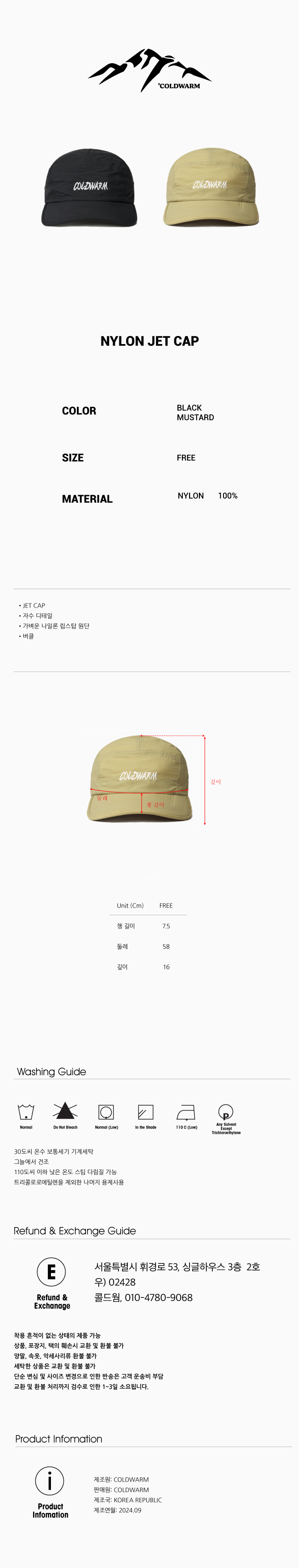 콜드웜 나일론 제트 캡 블랙